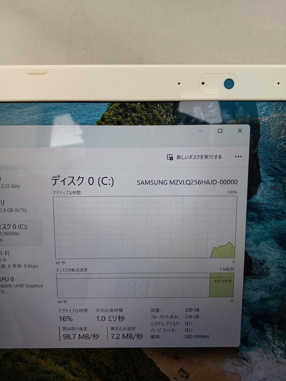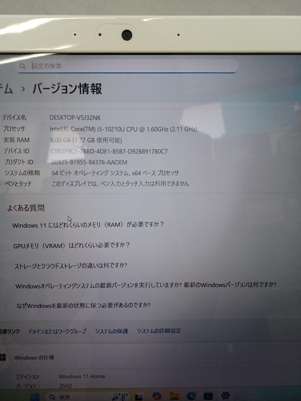 CPU:Corei5-10210U 1.6GHz メモリ:8GB M.2 SSD256GB |