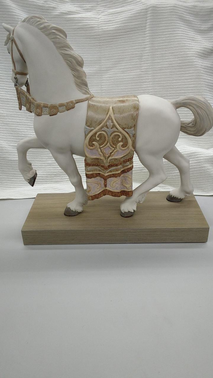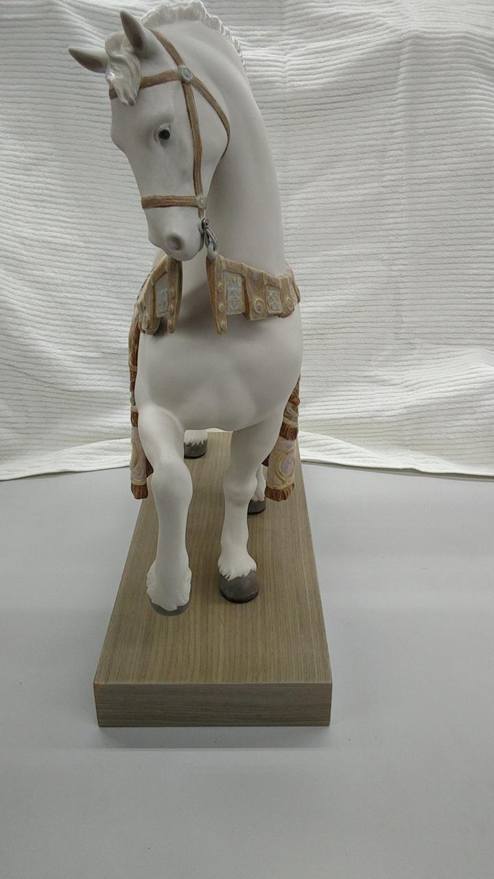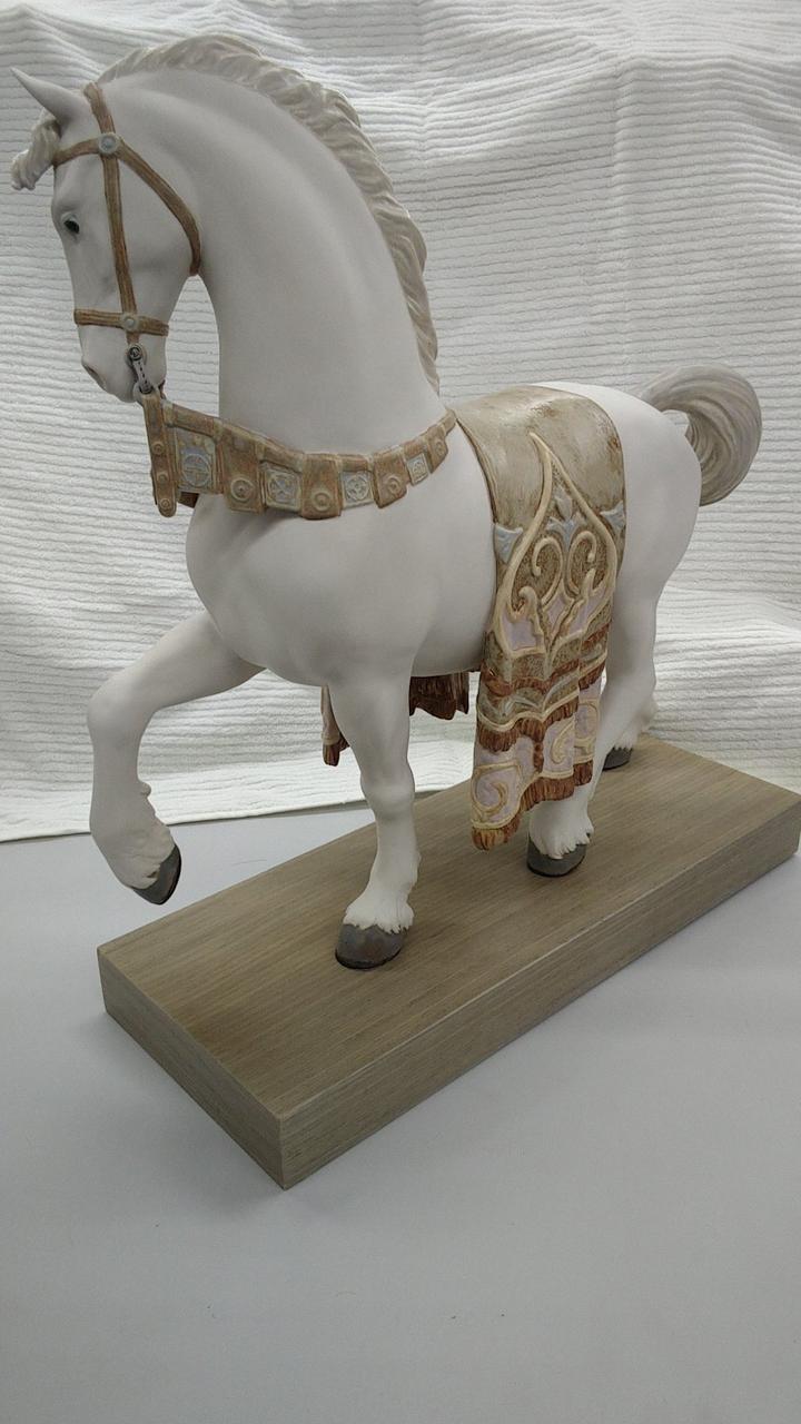 リヤドロの威風堂々の馬の置物となります。片脚を持ち上げて、堂々とした立ち姿の馬の表現が見事な作品です。