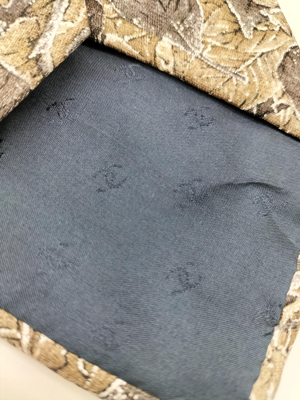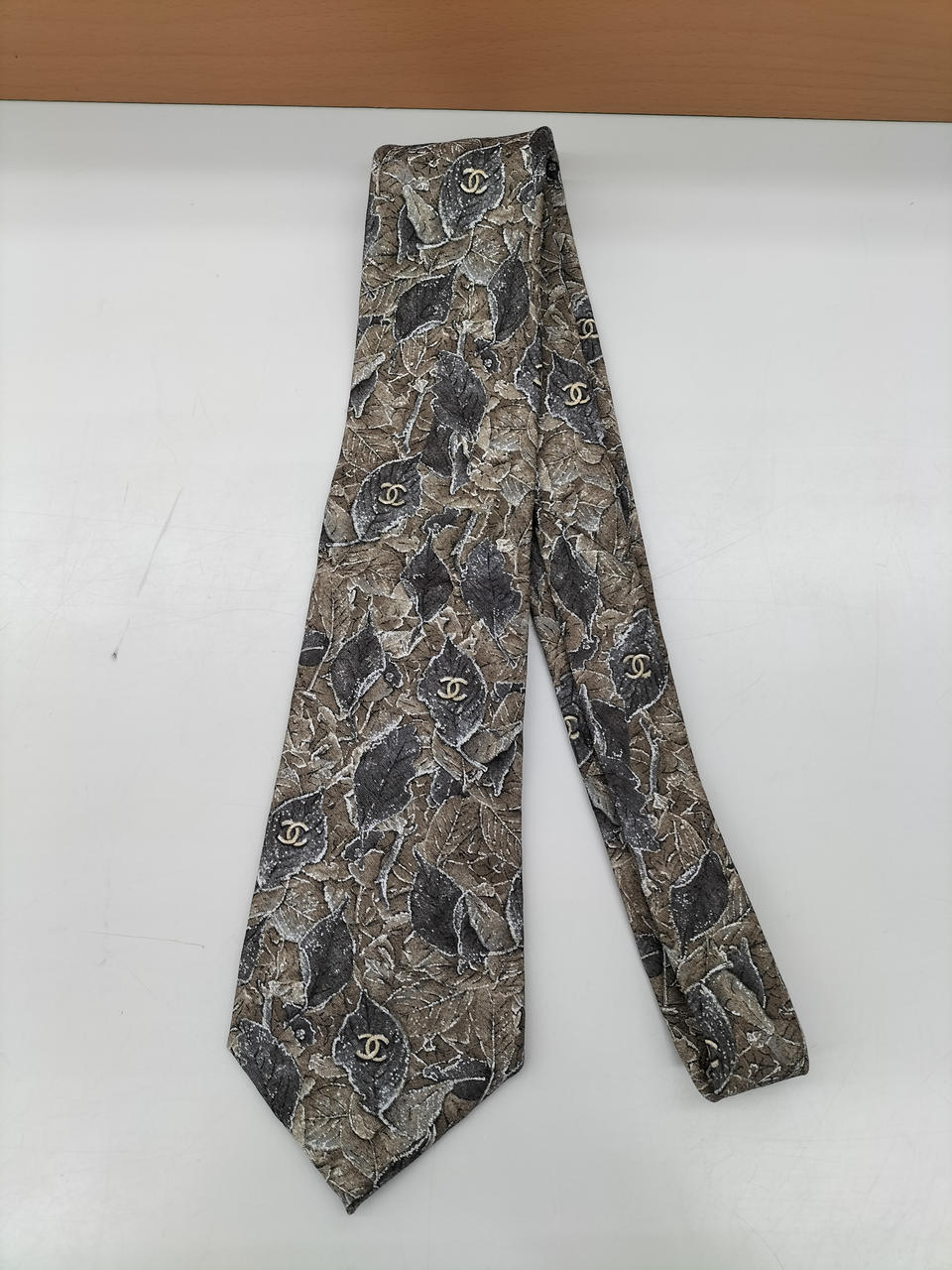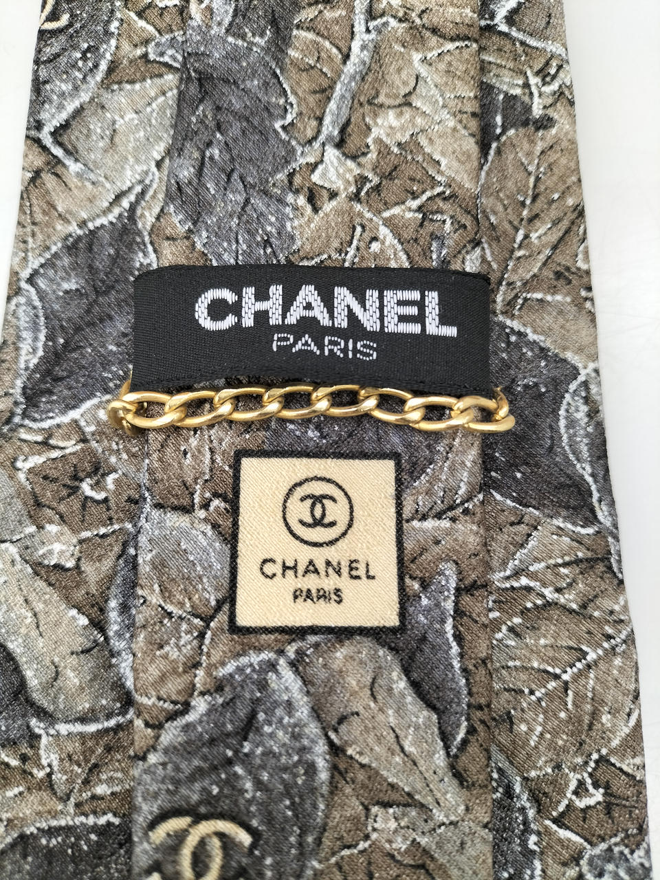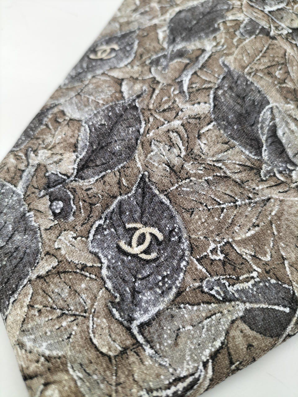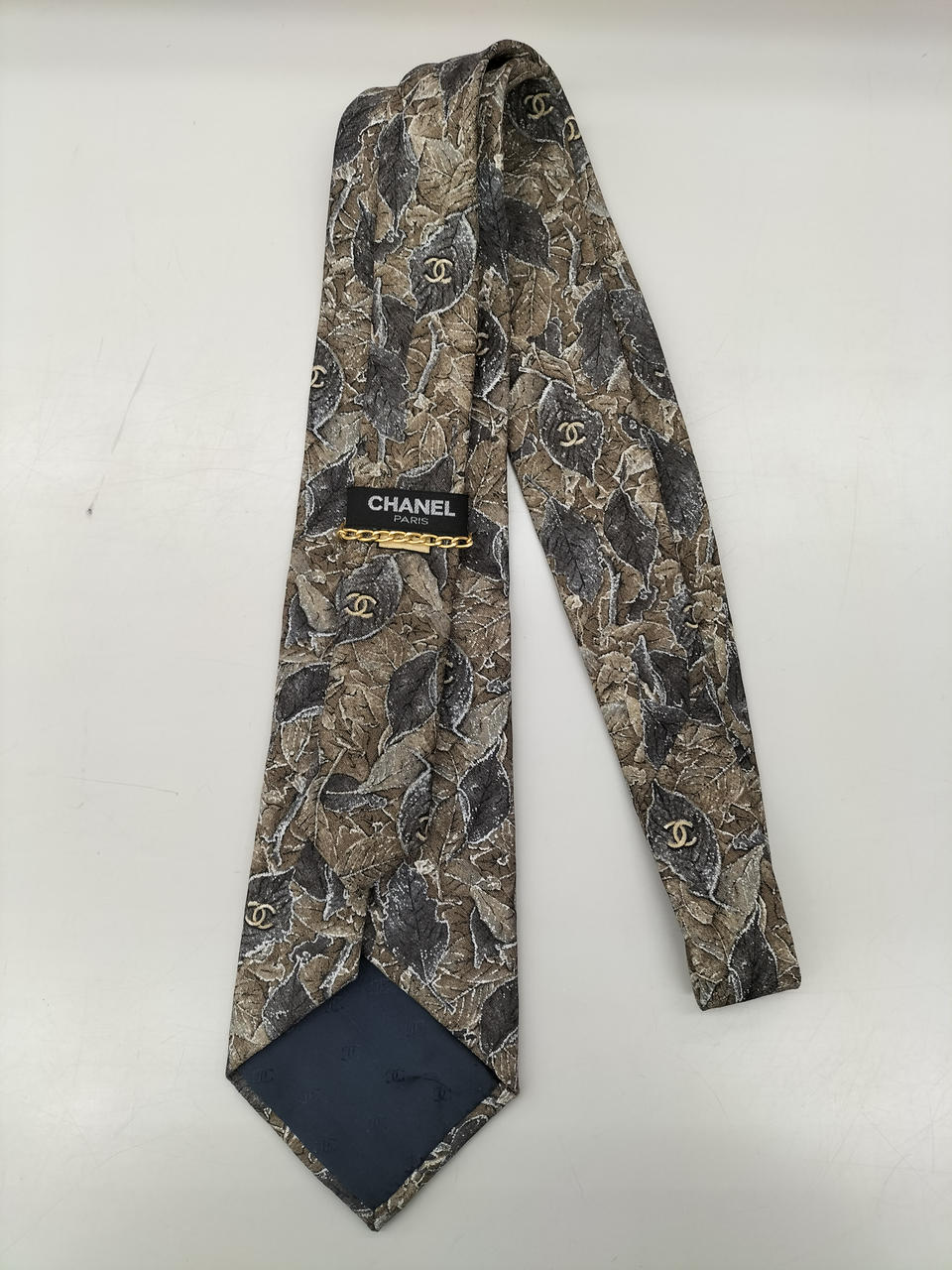 シックなリーフ柄にシャネルのロゴが散りばめられたネクタイです。