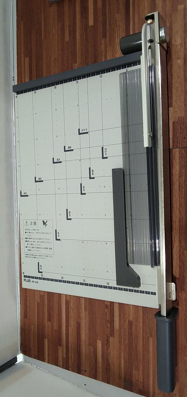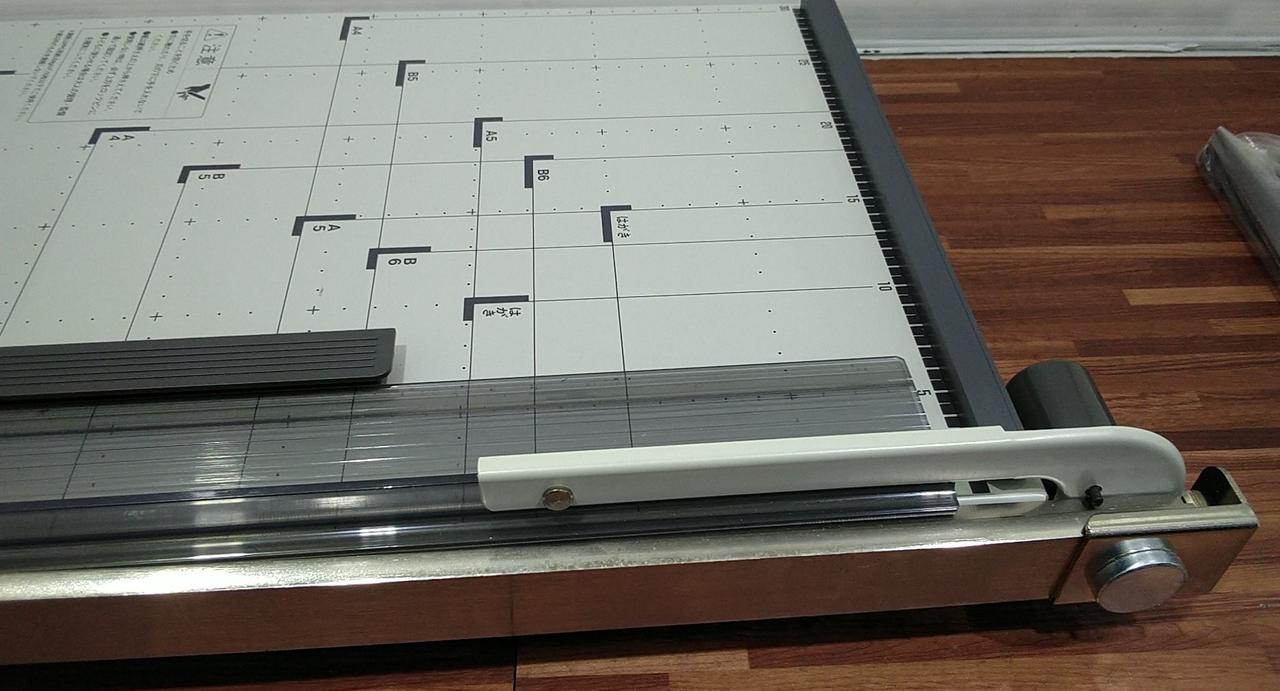 B4サイズに対応する安定感のある手動式ペーパーカッターです。