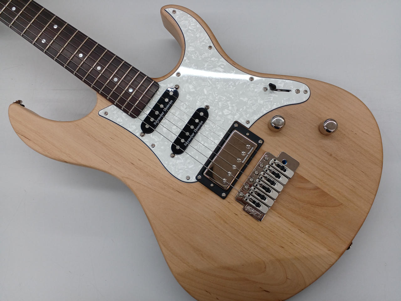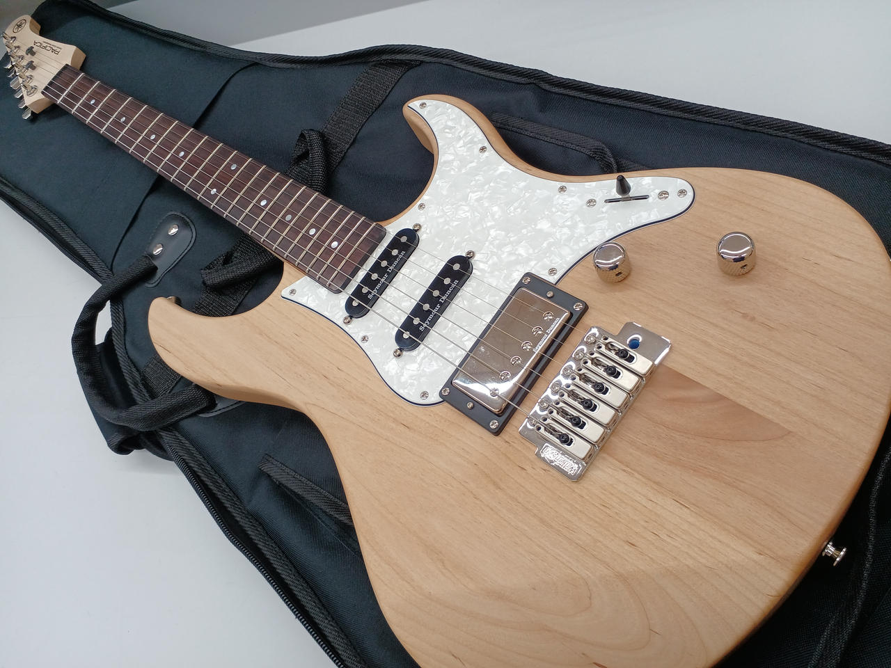 ボディにアルダー材、ネックにメイプル材、指板にはローズウッドを採用し、フロントとセンターにシングルコイル、リアにハムバッキングのピックアップを搭載した「PACIFICAシリーズ」の上位モデル。 |