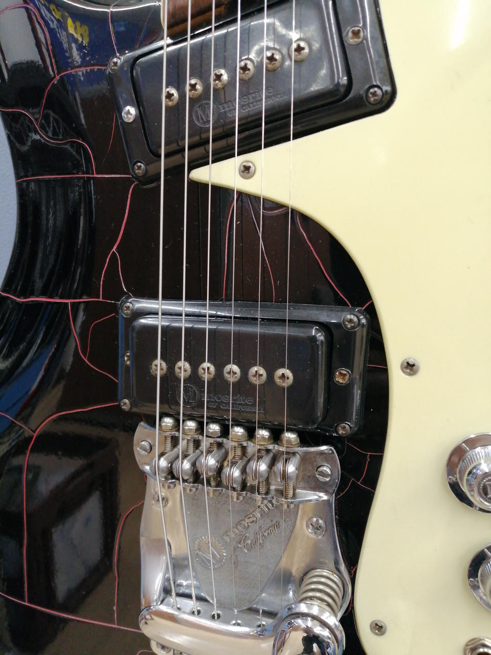 指定業者にてメンテナンス済みの商品です。(トグルスイッチ交換、トラスロッドナット修理、アーム部分ワッシャー取付、木ネジ取付、その他オールチェックメンテナンス)リペアマン曰く、使用パーツ、造りからUSA製かと思われるが確証はないとのことです。 |