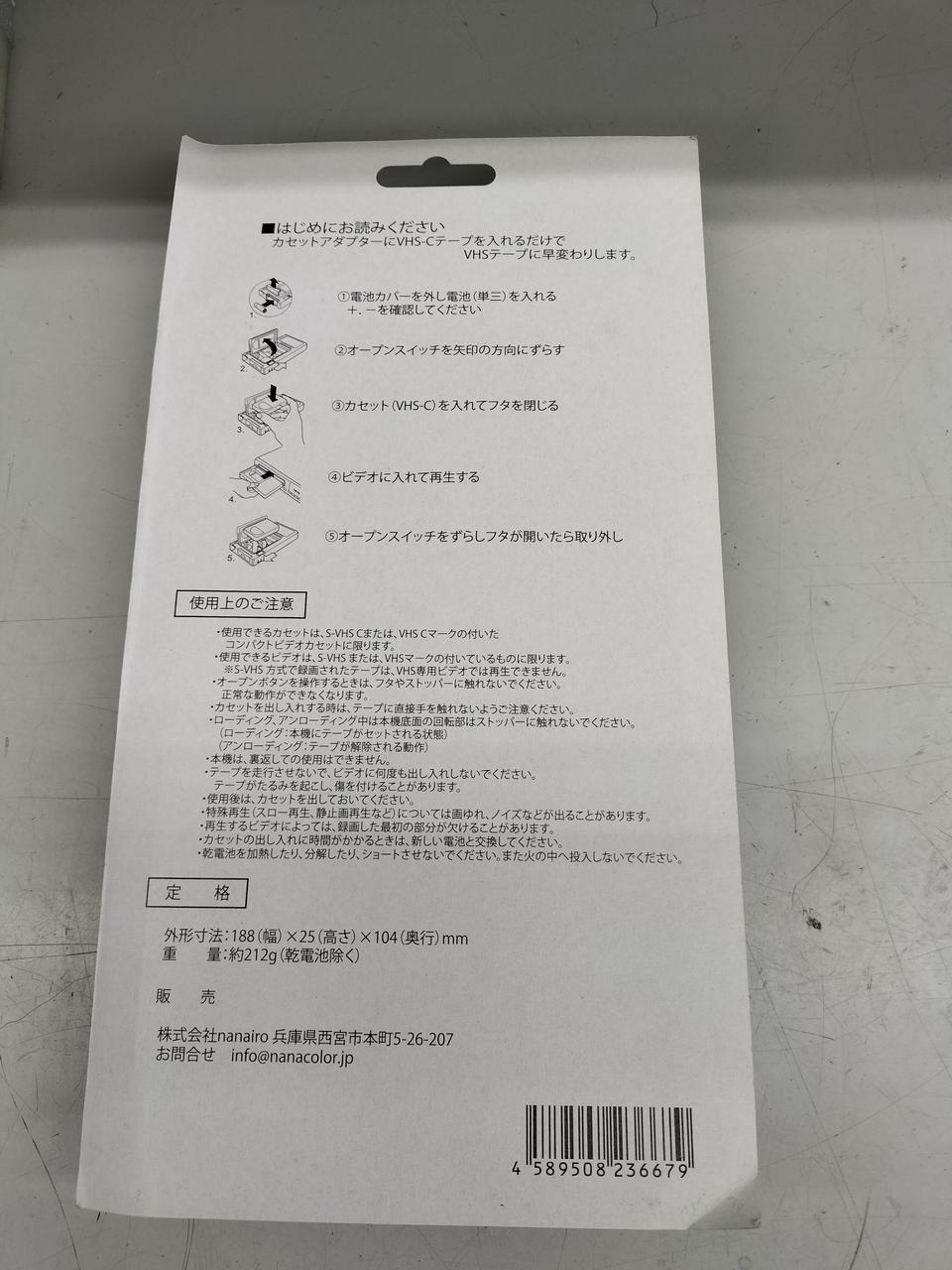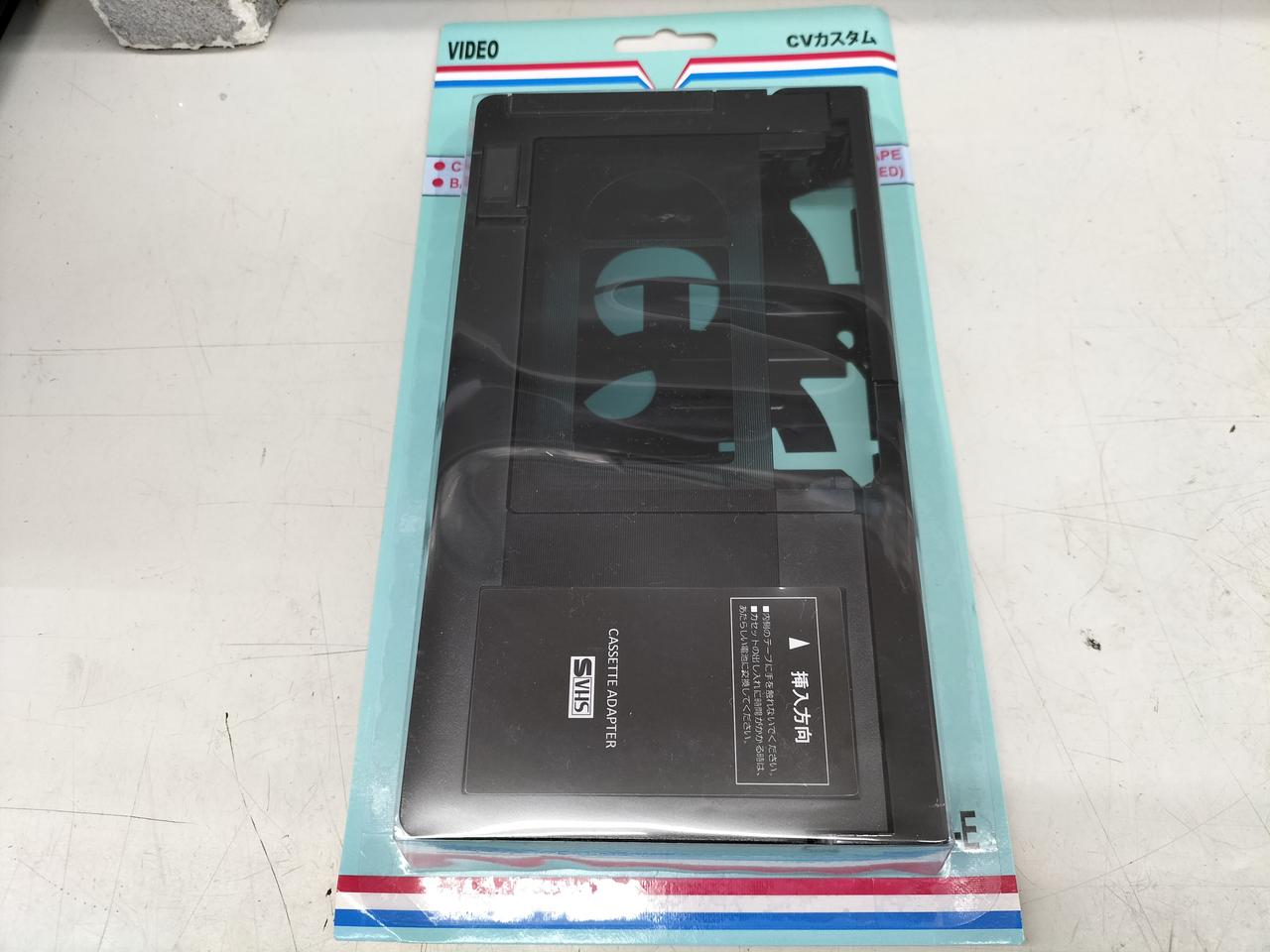 カセットアダプターにVHSーCテープを入れるだけでVHSテープに変わります。 |