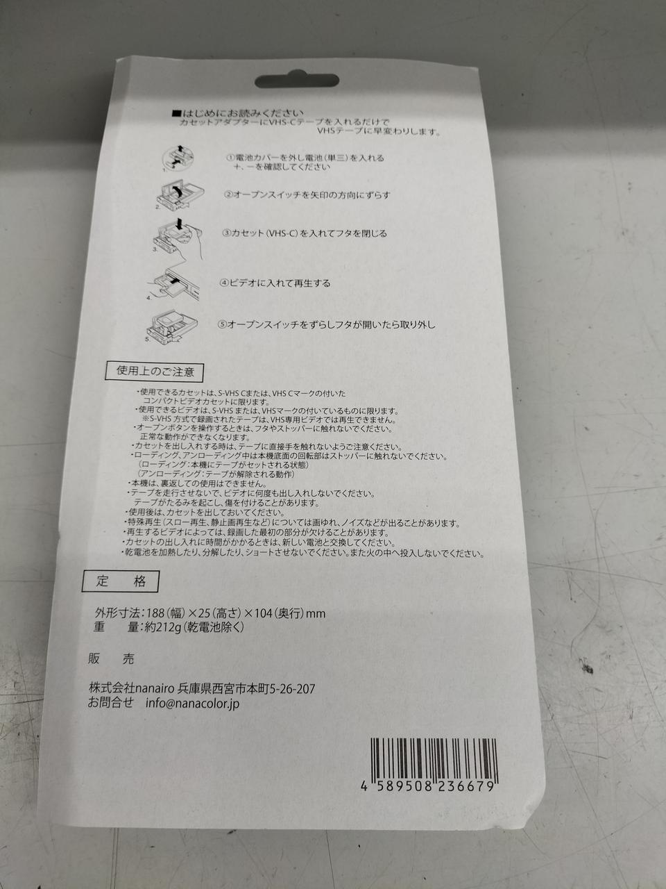 カセットアダプターにVHSーCテープを入れるだけでVHSテープに変わります。 |