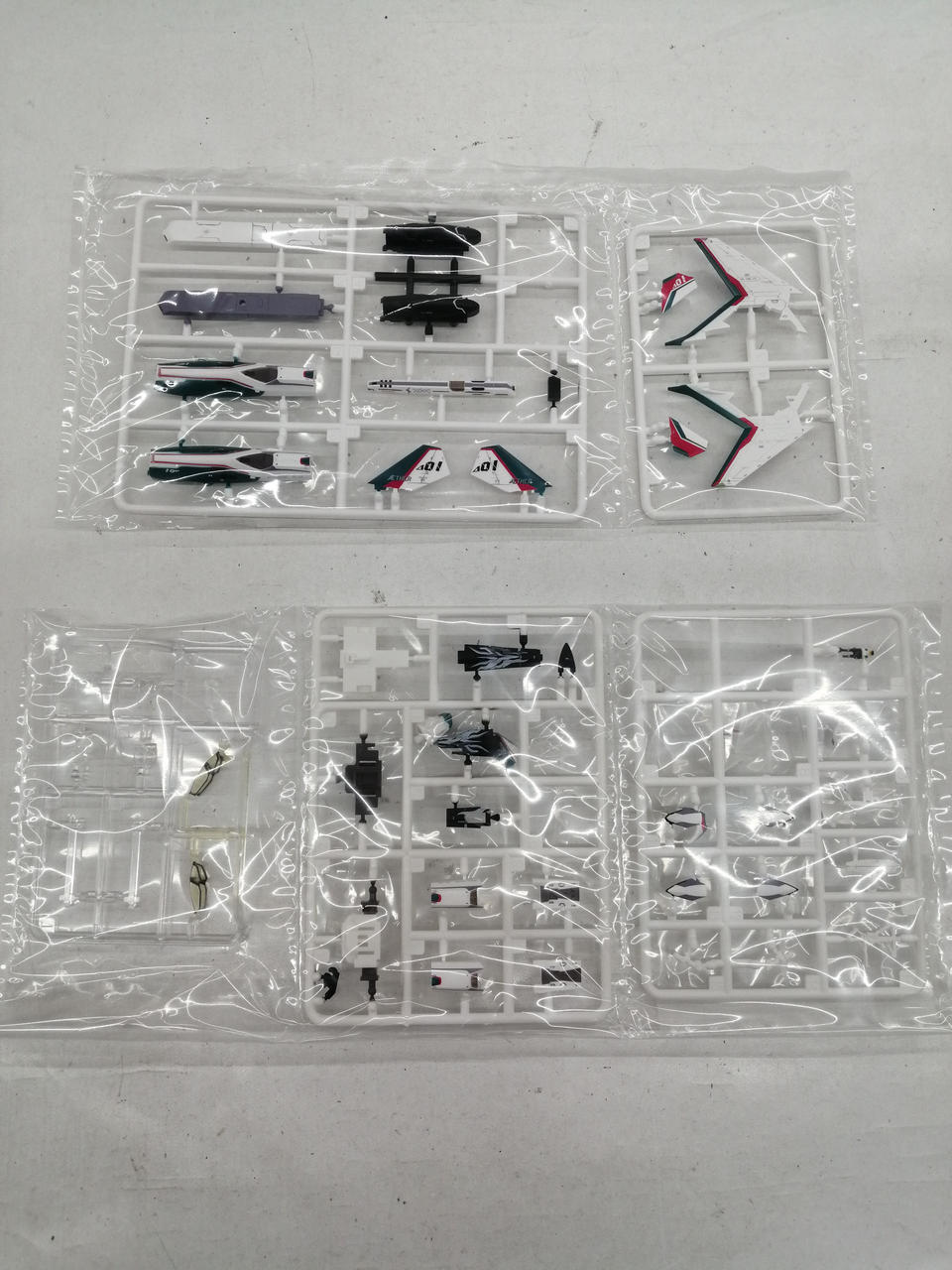外箱に傷みと色褪せが見られます。どちらも部品は揃っています。セット特典のデカールが欠品です。 |