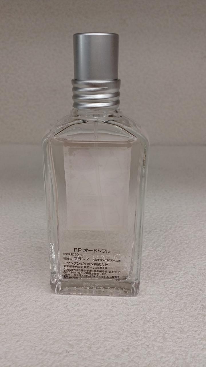 LOCCITANEの香水です。RP オードトワレ50ml。店頭でも販売しているため、状態が変わってしまう場合がございます。 商品の状態については店舗にお問い合わせください。 また、照明やモニター環境により画像の色や素材感が違って見える可能性もあります。ご了承下さい。