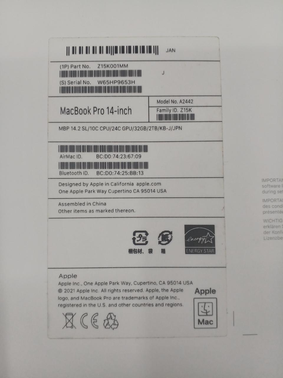 Apple M1 Max メモリ:32GB SSD:2TB |