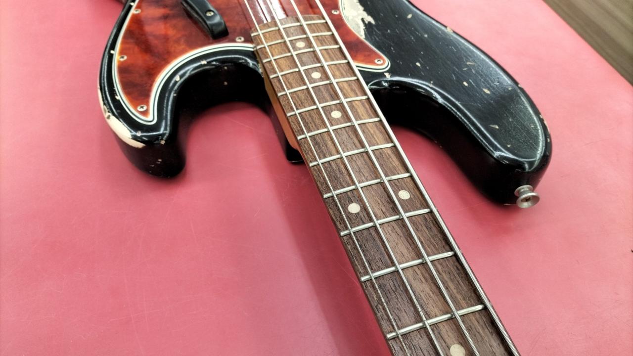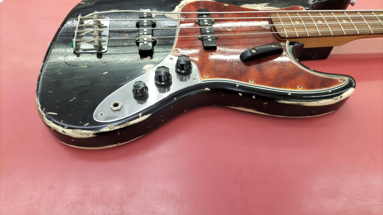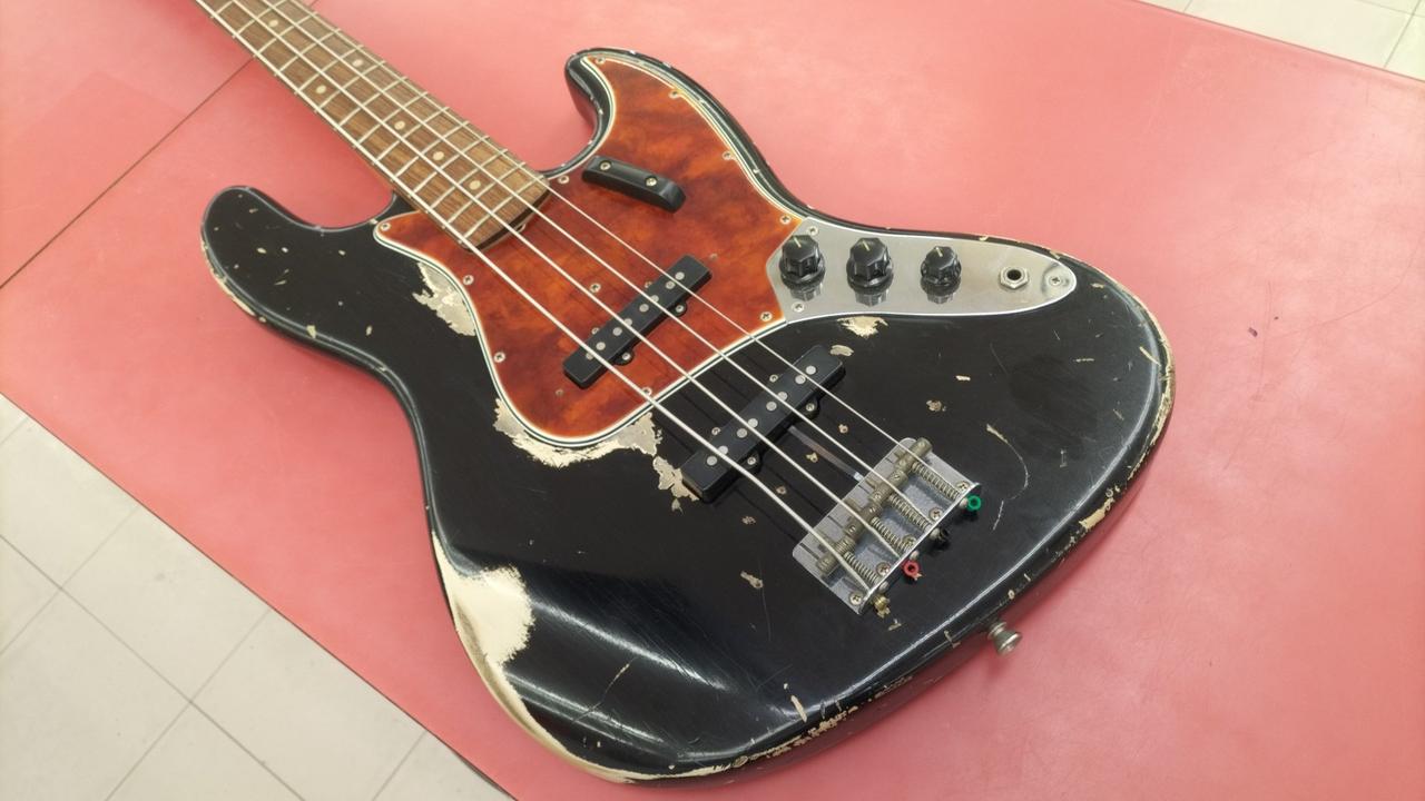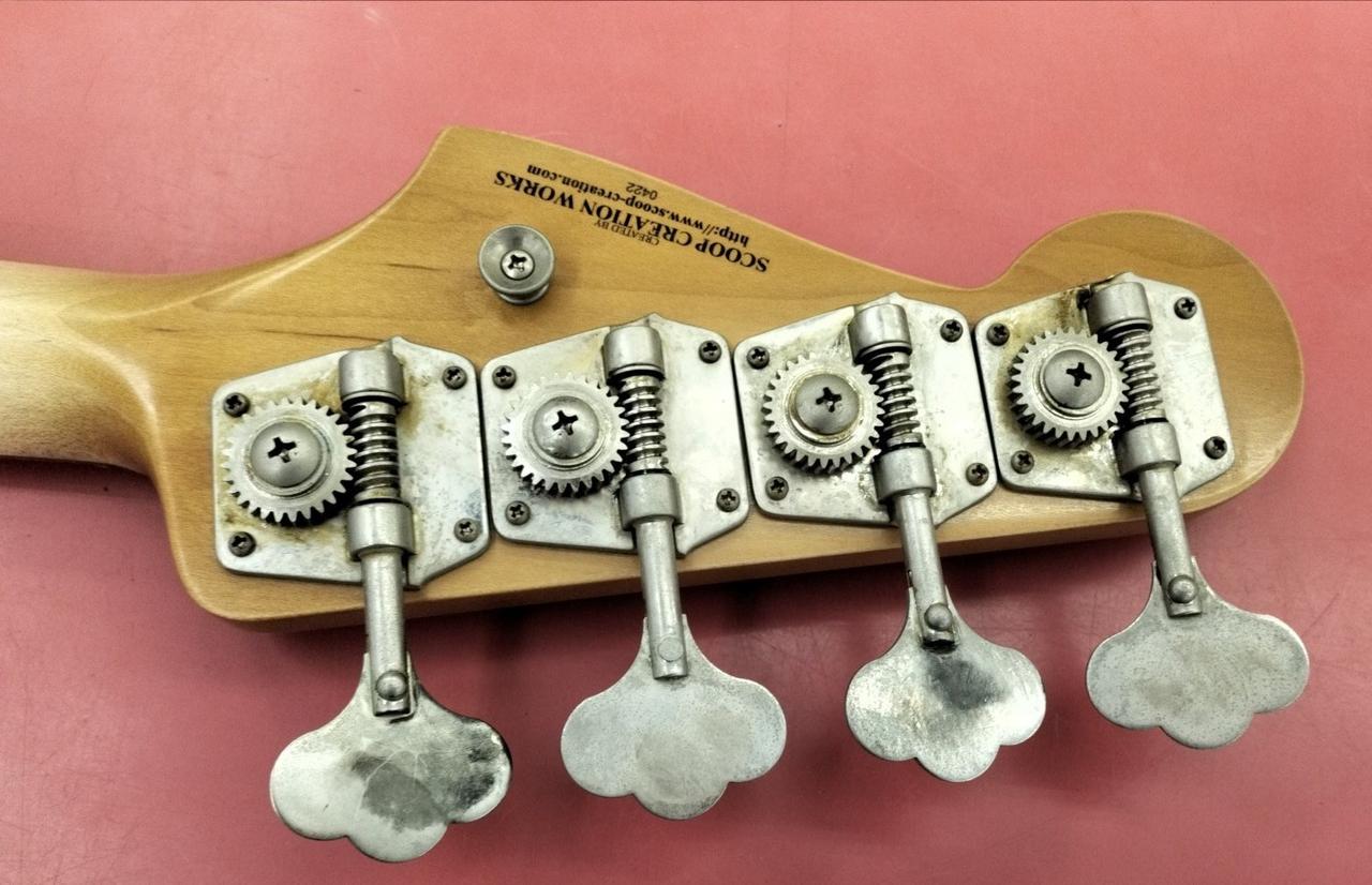 大阪吹田市に工房を構えるハンドメイドブランド、「Scoop Creation Works」によるエイジド仕様のジャズべ。 |