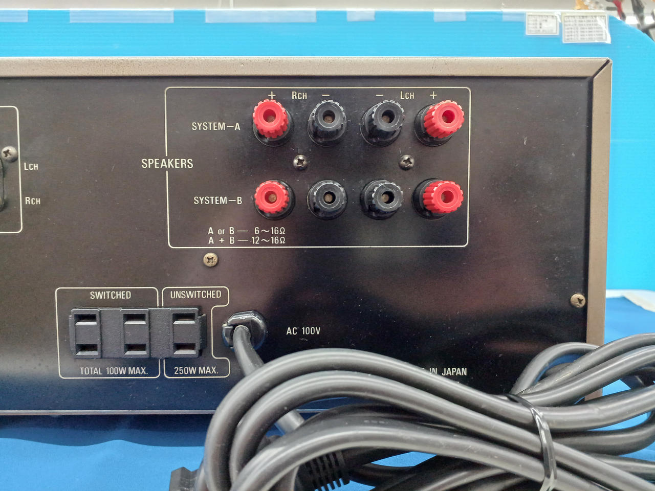 パワーアンプ部 定格出力:170W+170W(6Ω) 140W+140W(8Ω)プリアンプ部 定格出力:150MV 最大出力:14.5V |