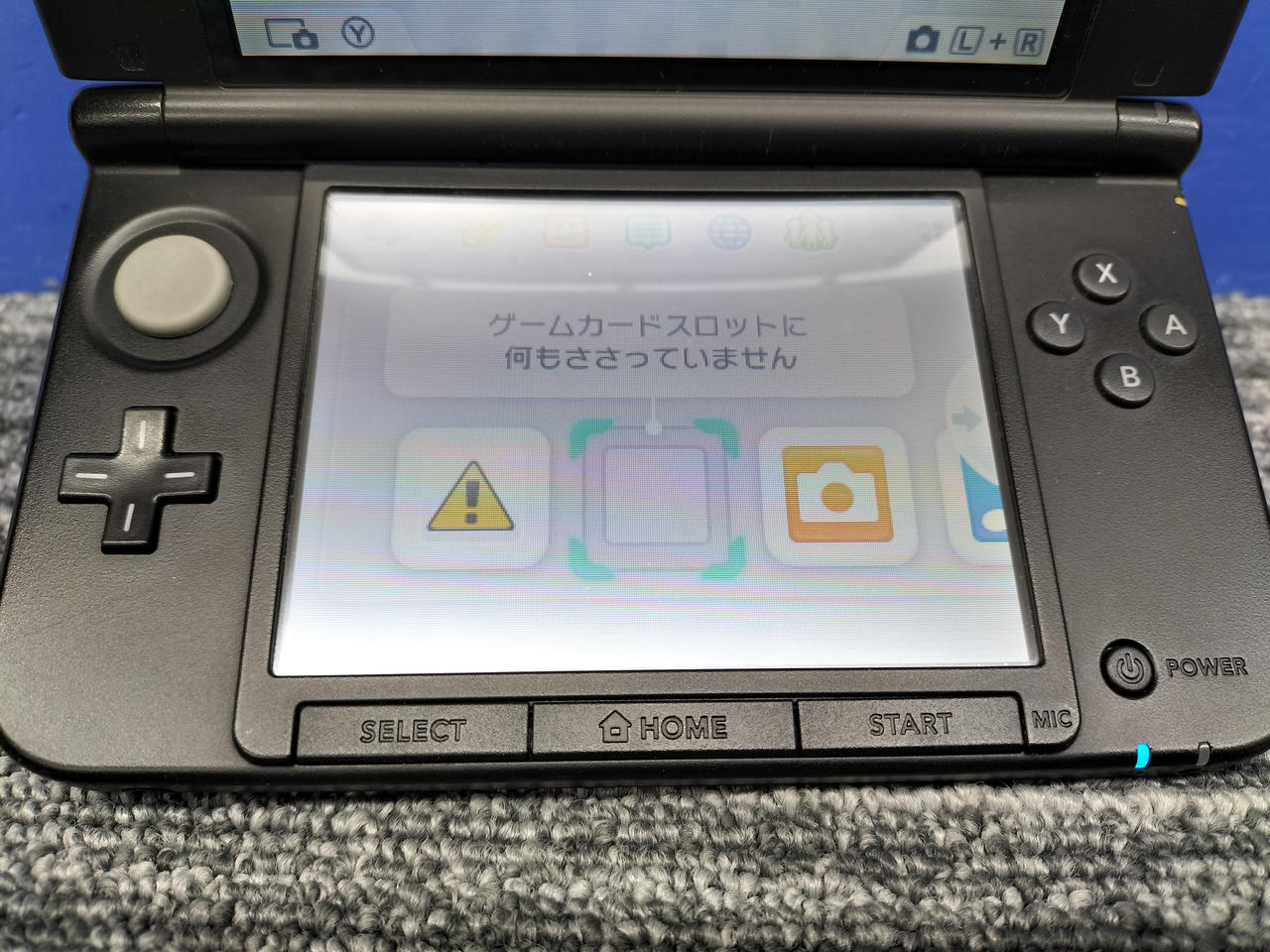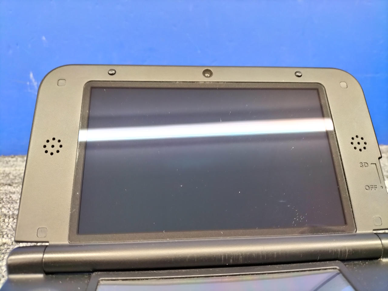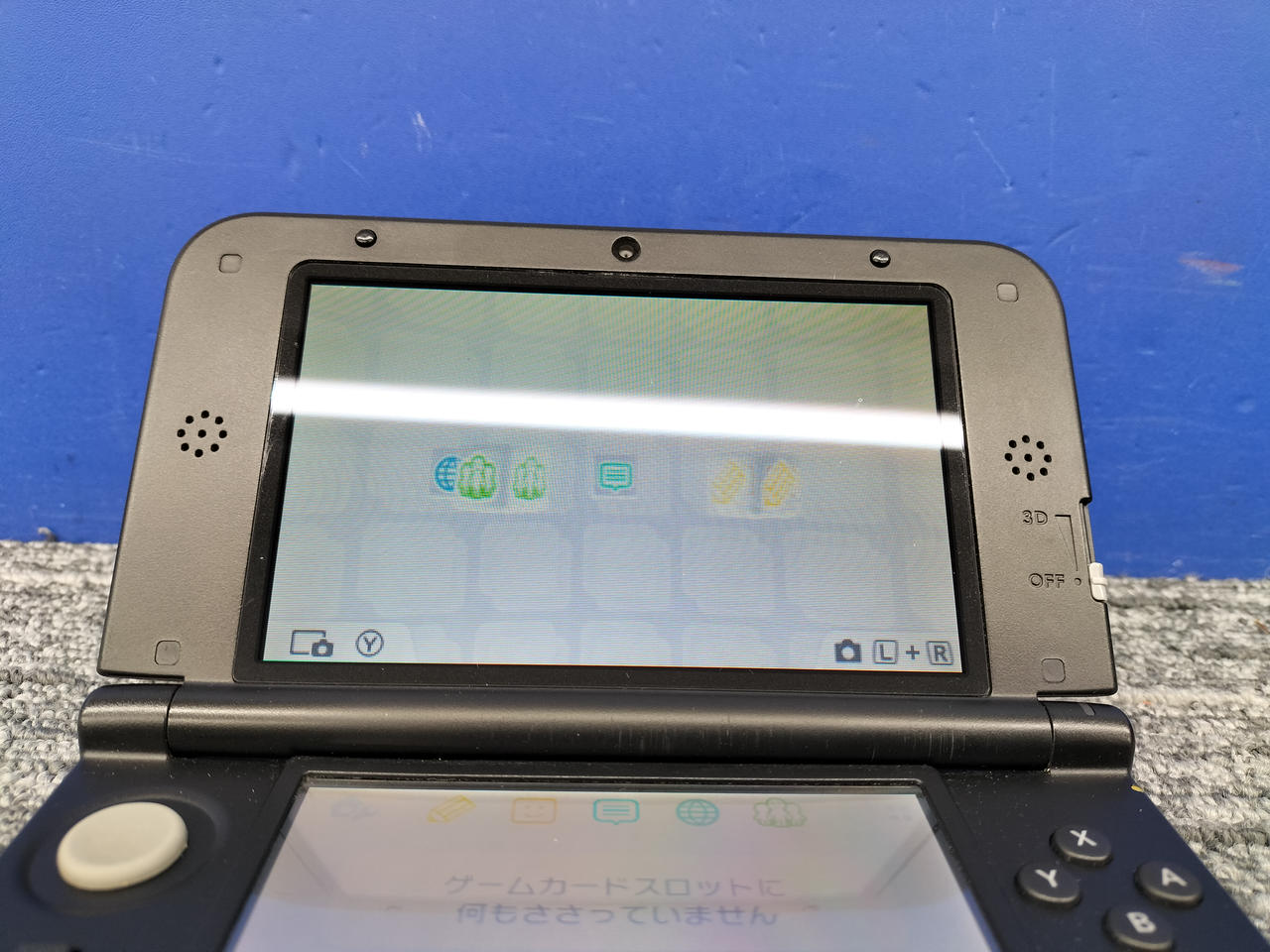 動作状況:ゲーム読み込みしました。※ヒンジにヒビ、上画面右側のフチに浮き有り。その為か、カメラの接続悪く、起動時の外カメラで映らなかったりカクついたり、内カメラでノイズ出たりします。 |