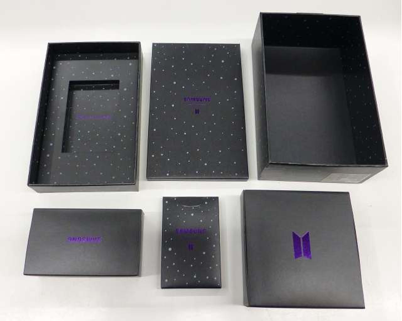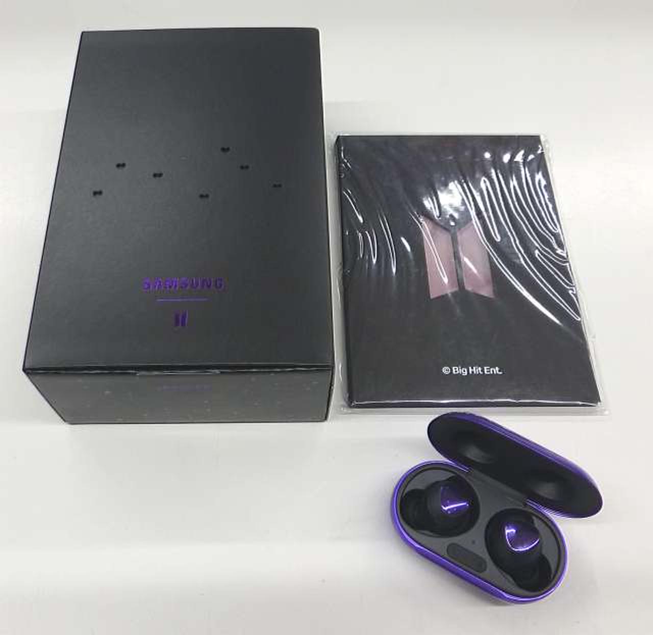 パープルのイヤホンケースやBTSメンバー全員のフォトカードも同梱したプレミアムな一台 |