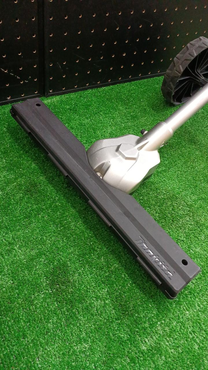尾上3面研磨刃と大型タイヤによって盛り土や刈った草の上でもスムーズに草刈りできる |
