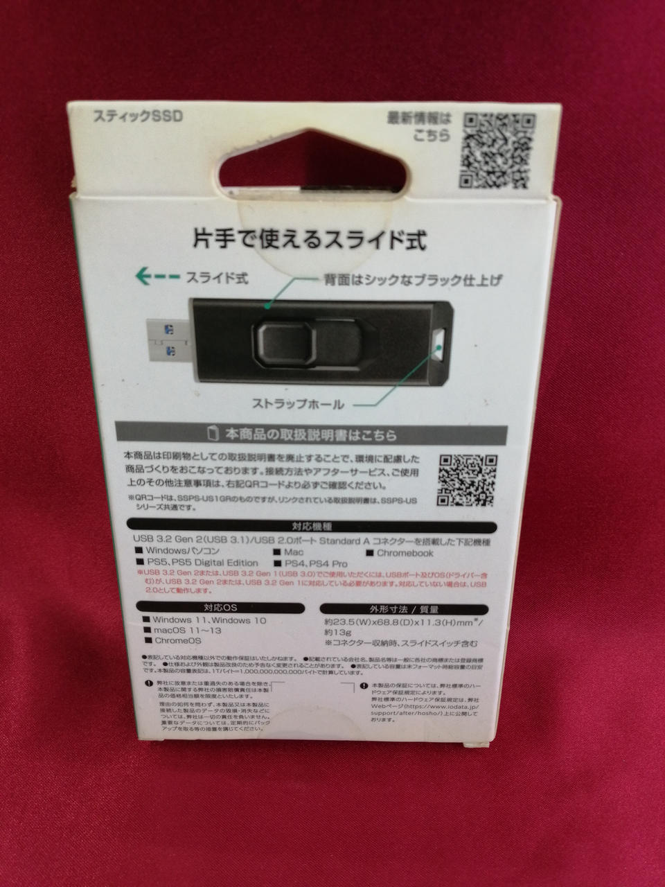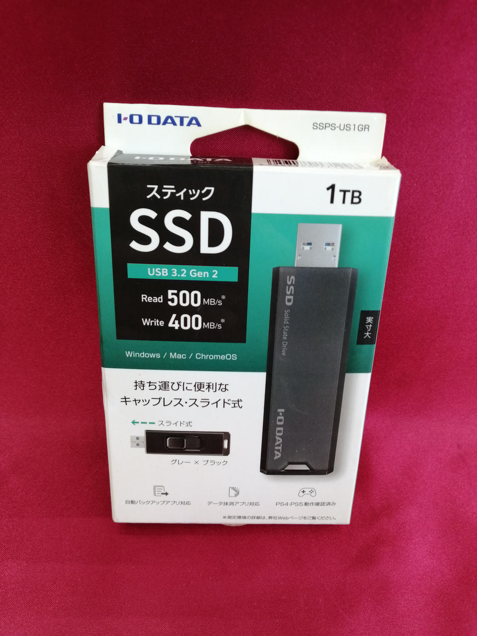 容量:1TB インターフェイス:USB 読込:500MB/s 書込:400MB/s |