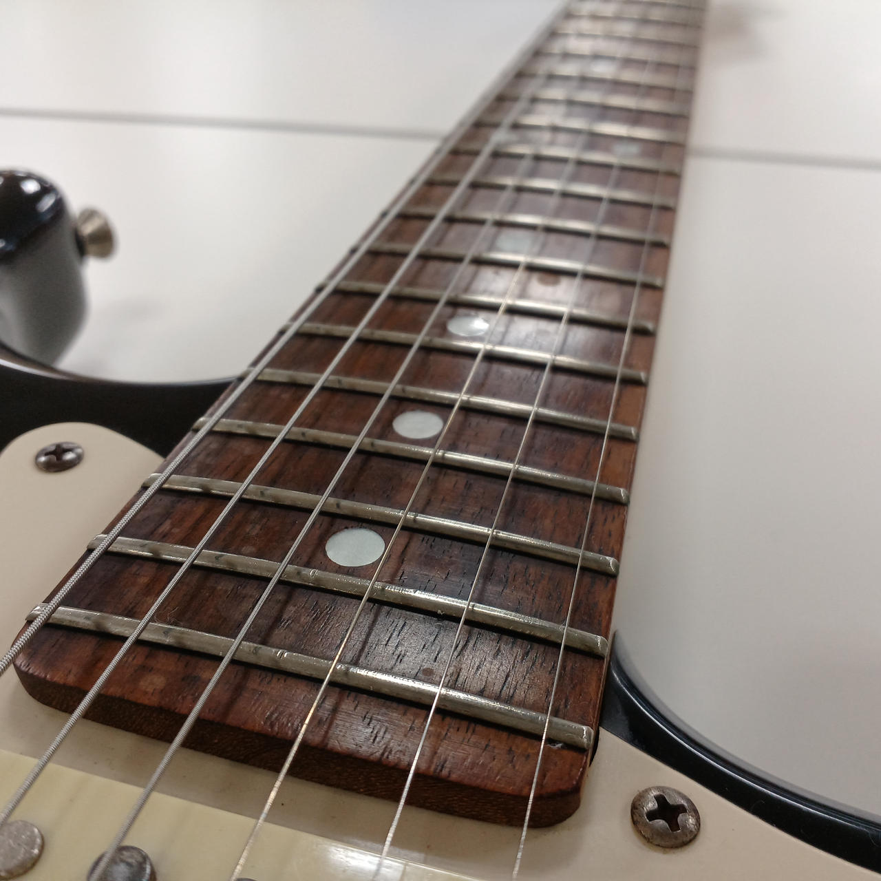 ネック:やや順反、トラスロッド:左右余裕あり、弦高(6弦約2.0mm/1弦約1.5mm) |