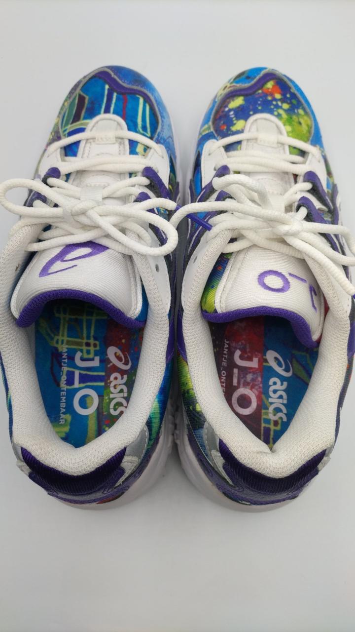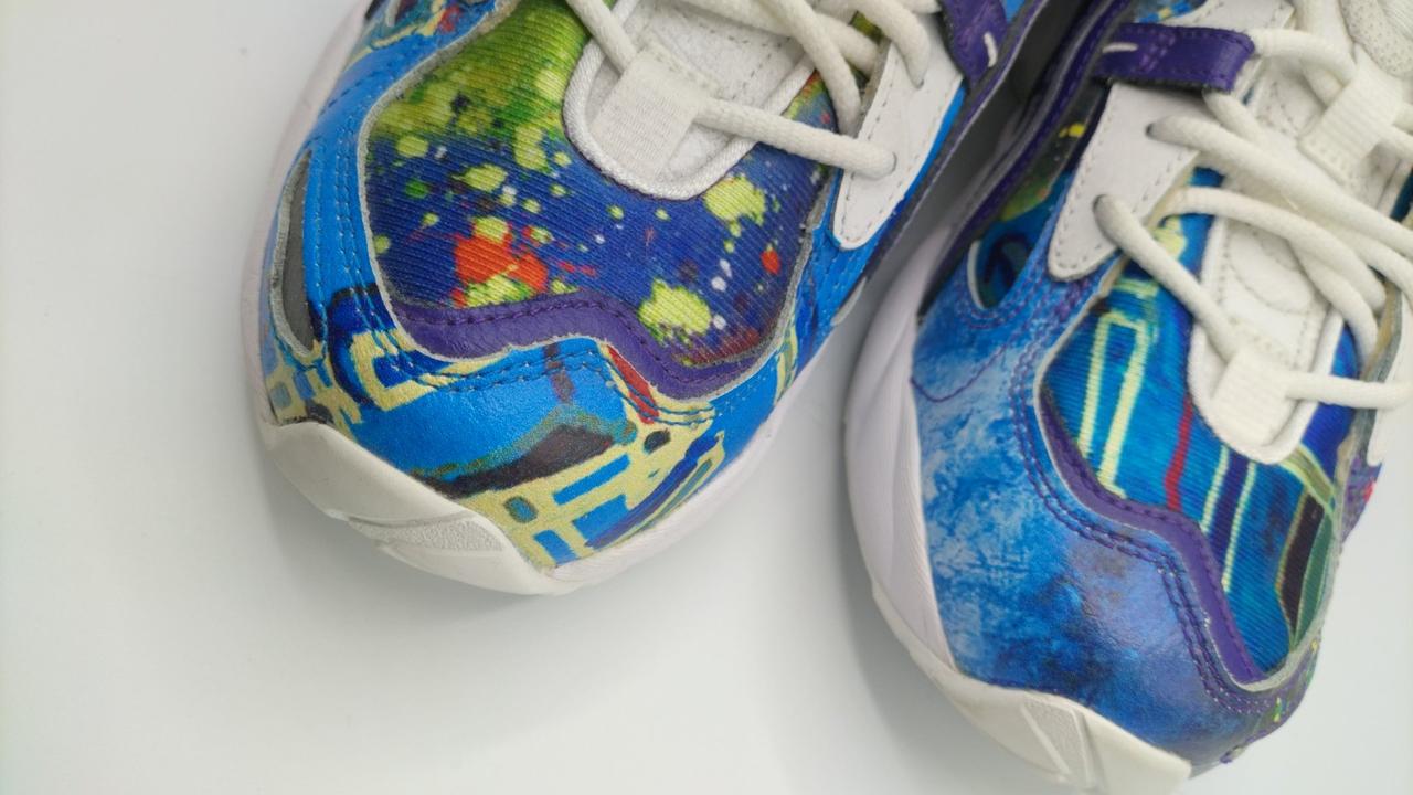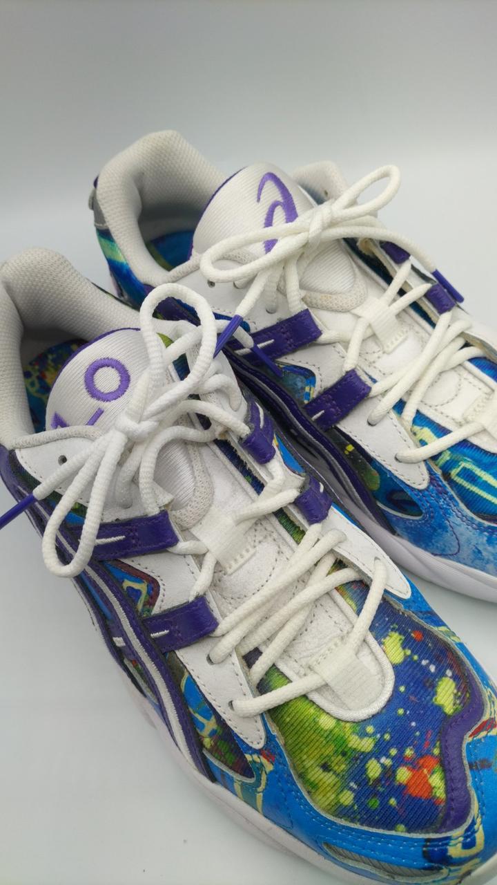 青ベースとしたカラフルなスニーカーです。