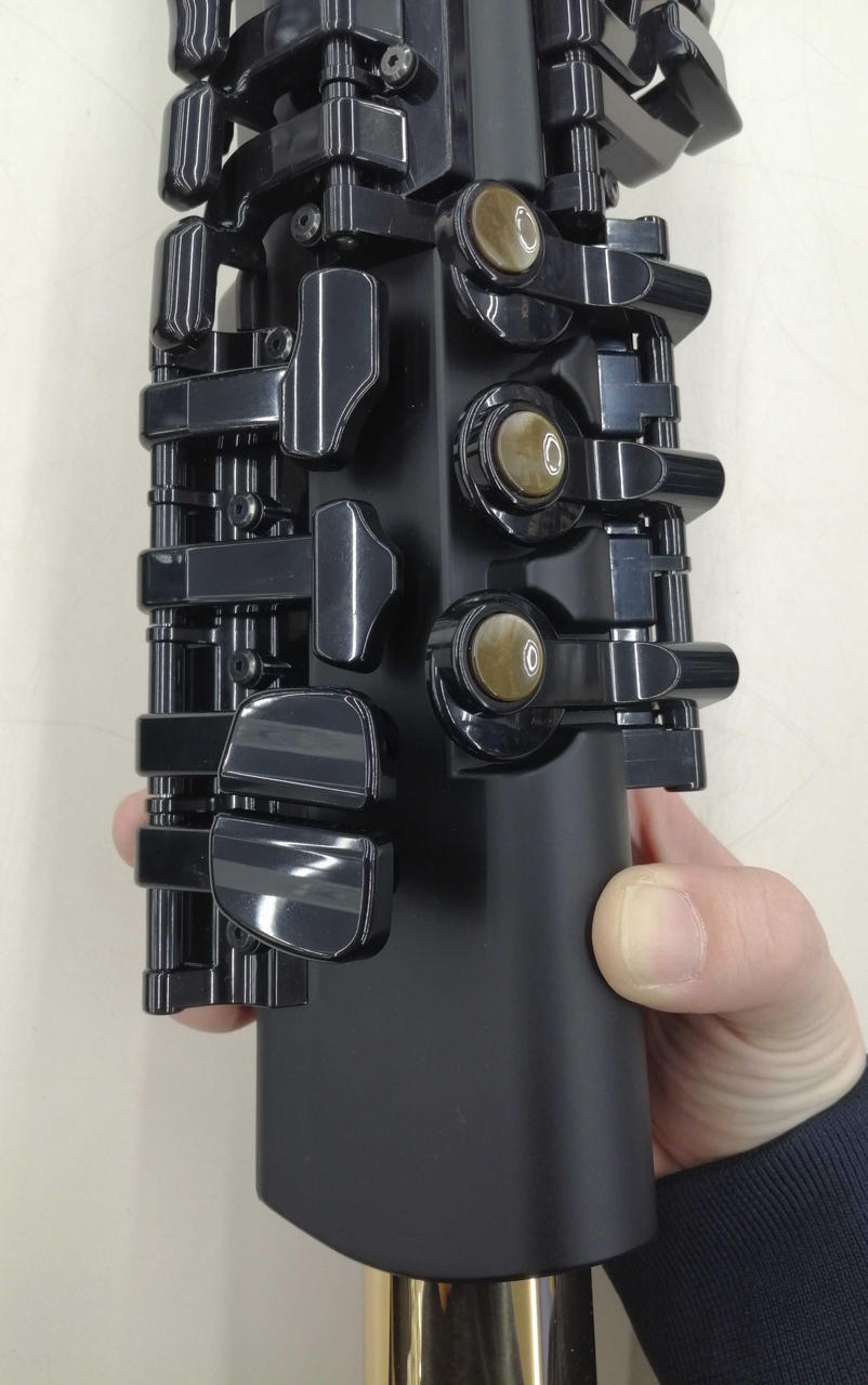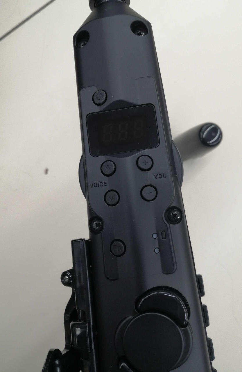 15段階で音量を調節できるデジタルサックス。イヤホン端子で夜間も安心。56音色、管楽器9種類の音色やシンセサイザー系の音色も合わせ73音色を搭載 |