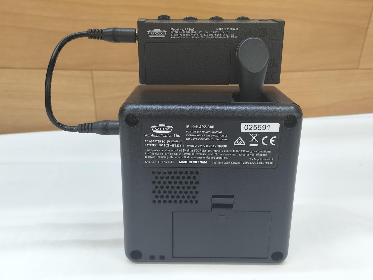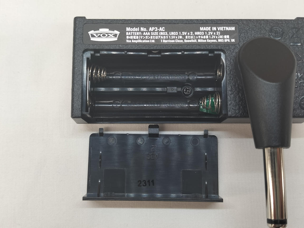 AMPLUG:単3電池×2駆動 キャビネット:9V電池×1駆動 |