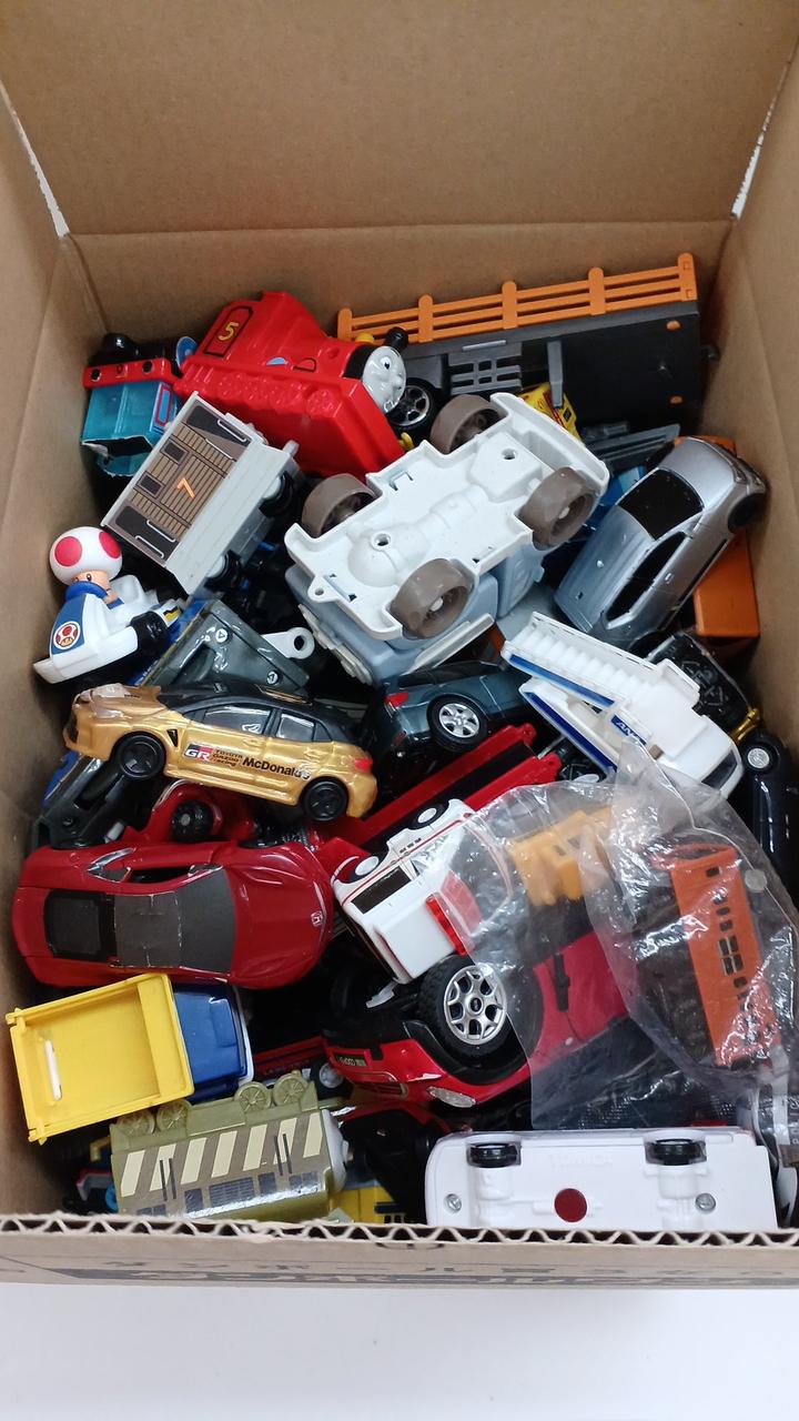 大小様々なミニカーのおまとめボックスです。 |