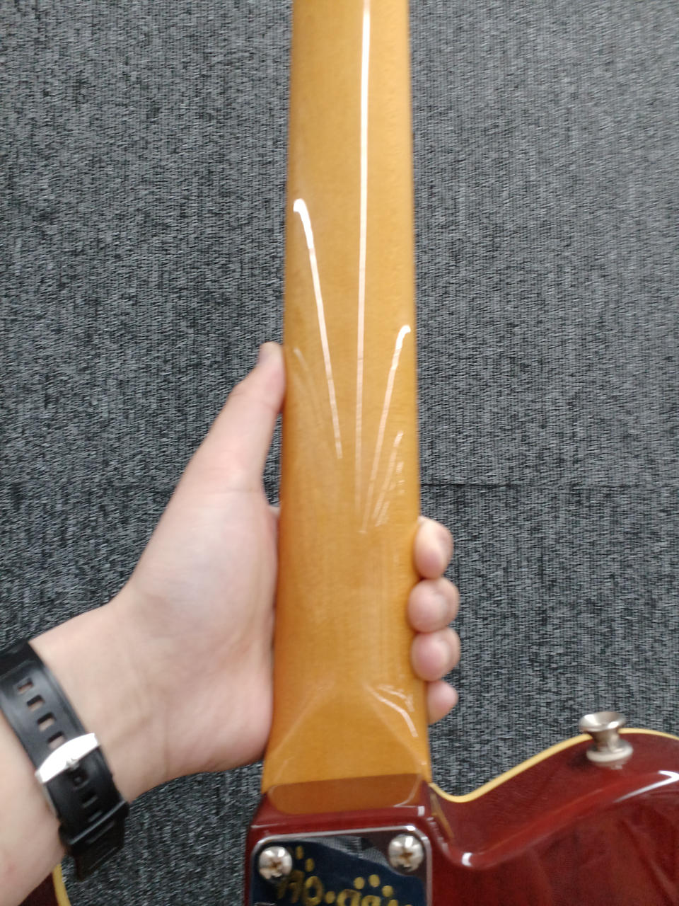 ロッド:固いですが、両方とも45度回りました。フレット:削れありません。ネック:ほぼストレートです。 |