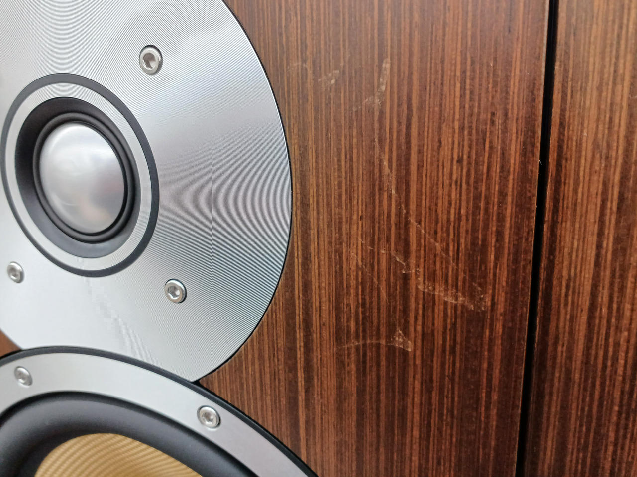 片側ツィーターキャップ凹みを直した跡あり。 |