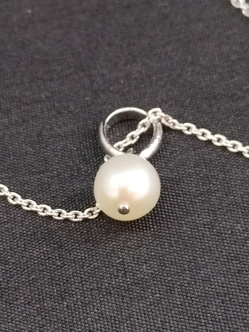 一粒パールのシンプルなシルバーネックレスです。