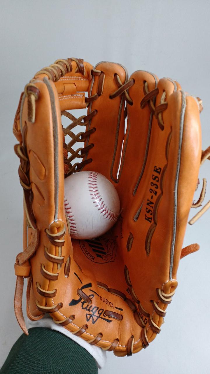 久保田スラッガーの軟式外野手用グラブです!革がしっかりとしていてボールを自然に包み込んでくれるような型付けがなされておりとても操作性が良いグラブです!