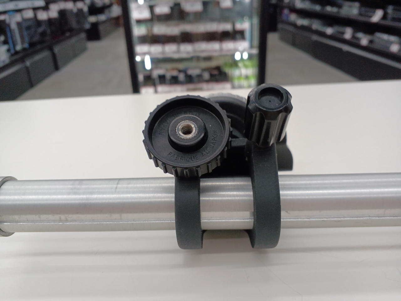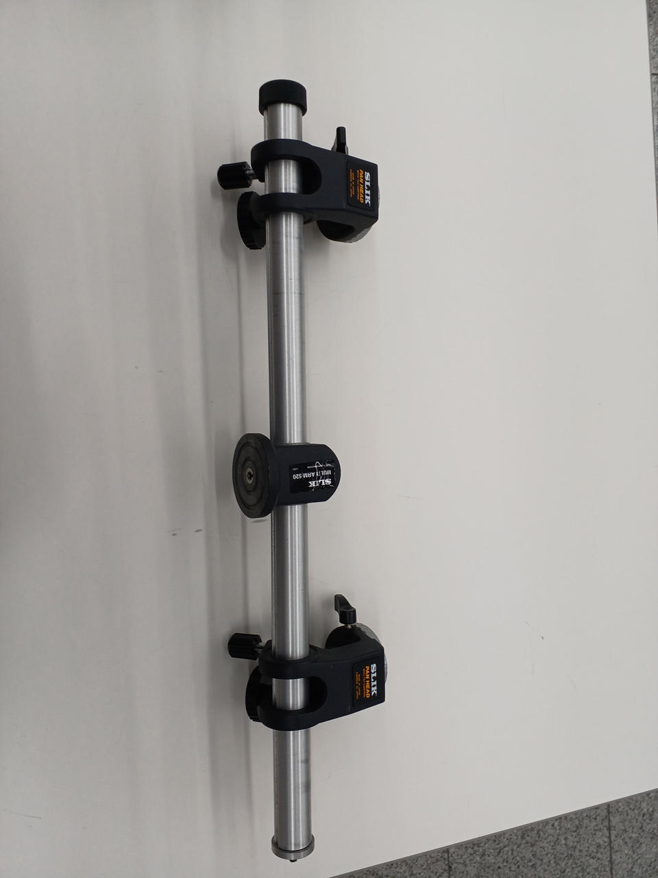 三脚にカメラ2台を搭載するためのアクセサリーバーにする雲台2つが付属し、2台のカメラをそれぞれ上下、左右個別の調整が可能です |