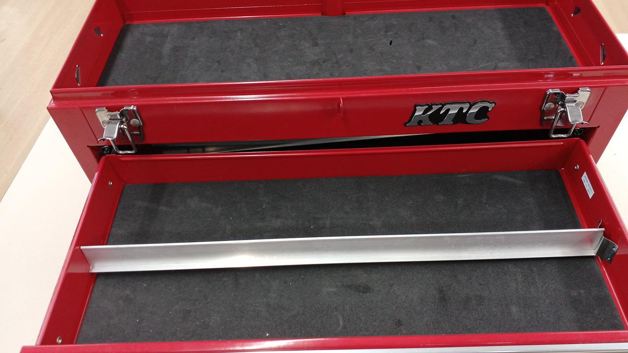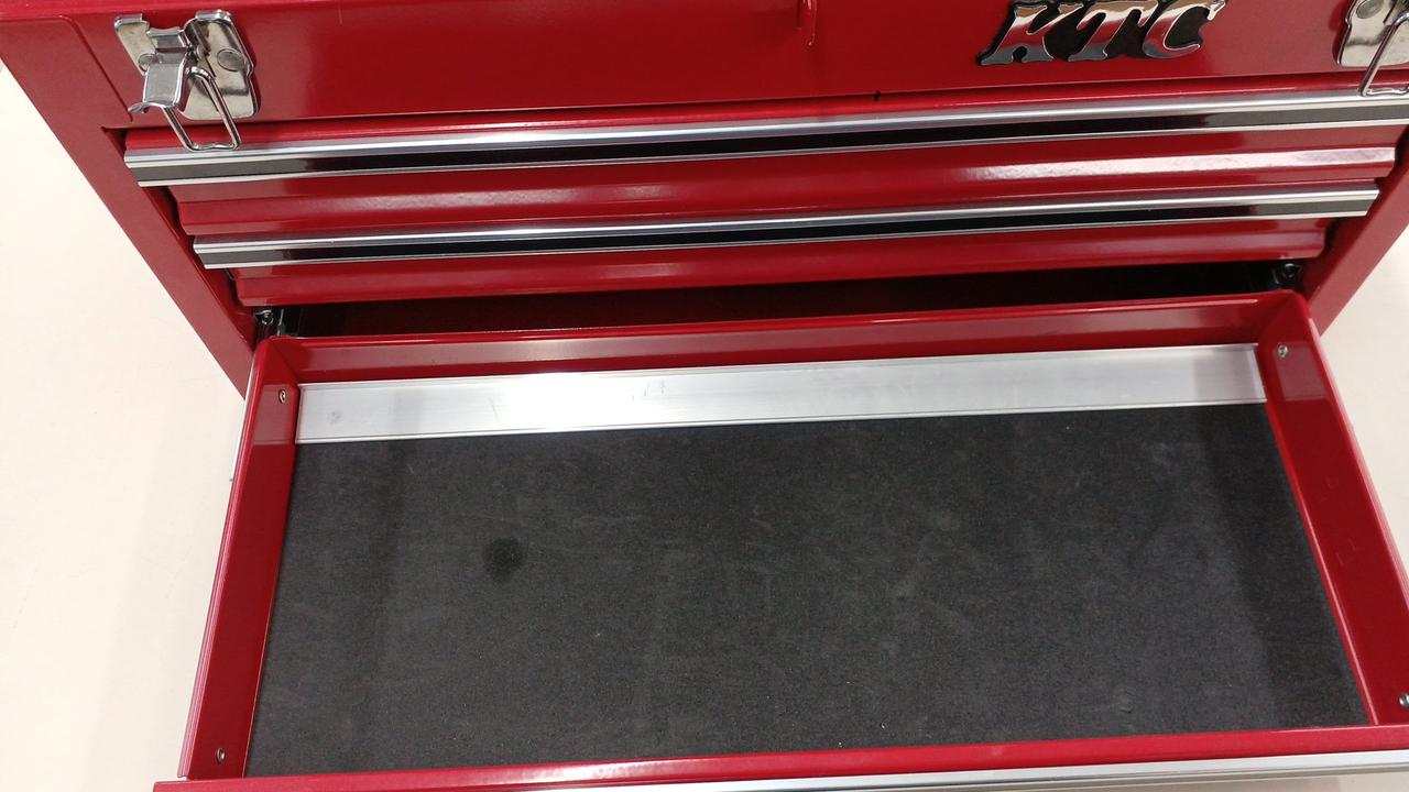 機能を追求したスタイリッシュデザインのチェスト/3段3引出し 自動車・バイク・自転車・機械整備に最適/トップパネルにエンボス加工 引出しはスムーズな開閉が可能なベアリングレールを採用 本体サイズ:W520×D215×H300 |