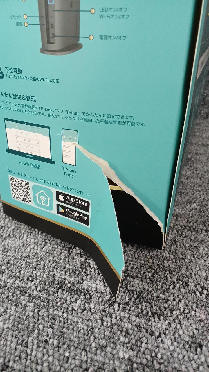 外箱に大きく破れあります。 |