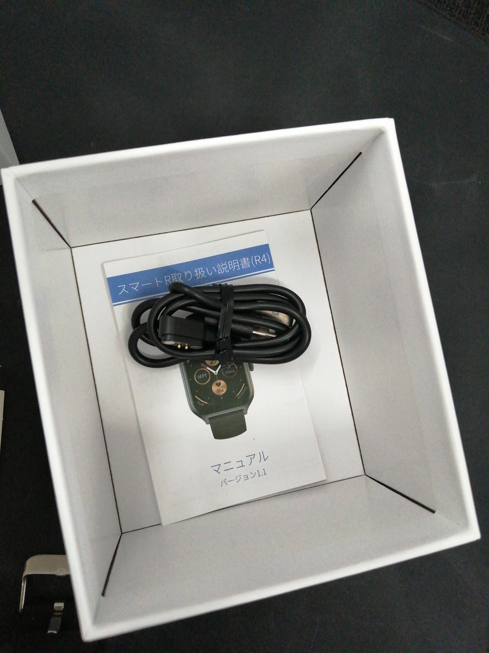 箱、取扱説明書、充電用USBケーブル付属