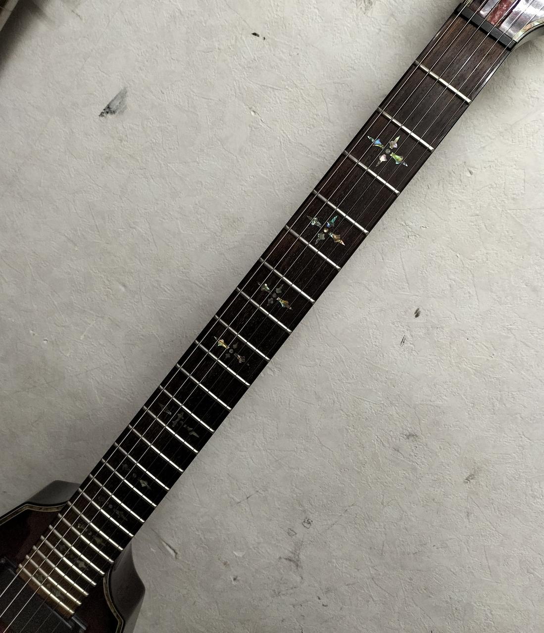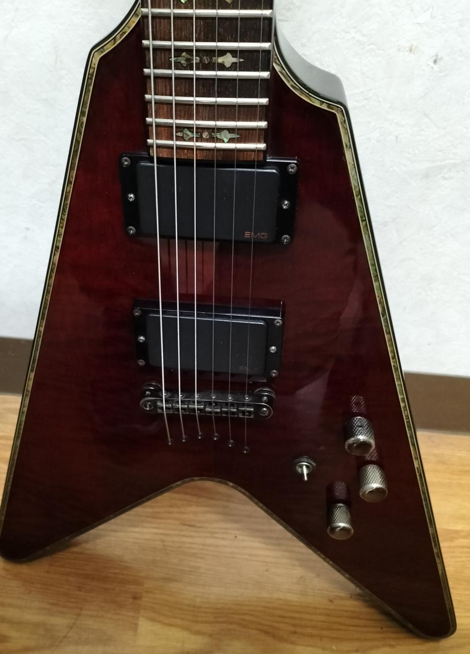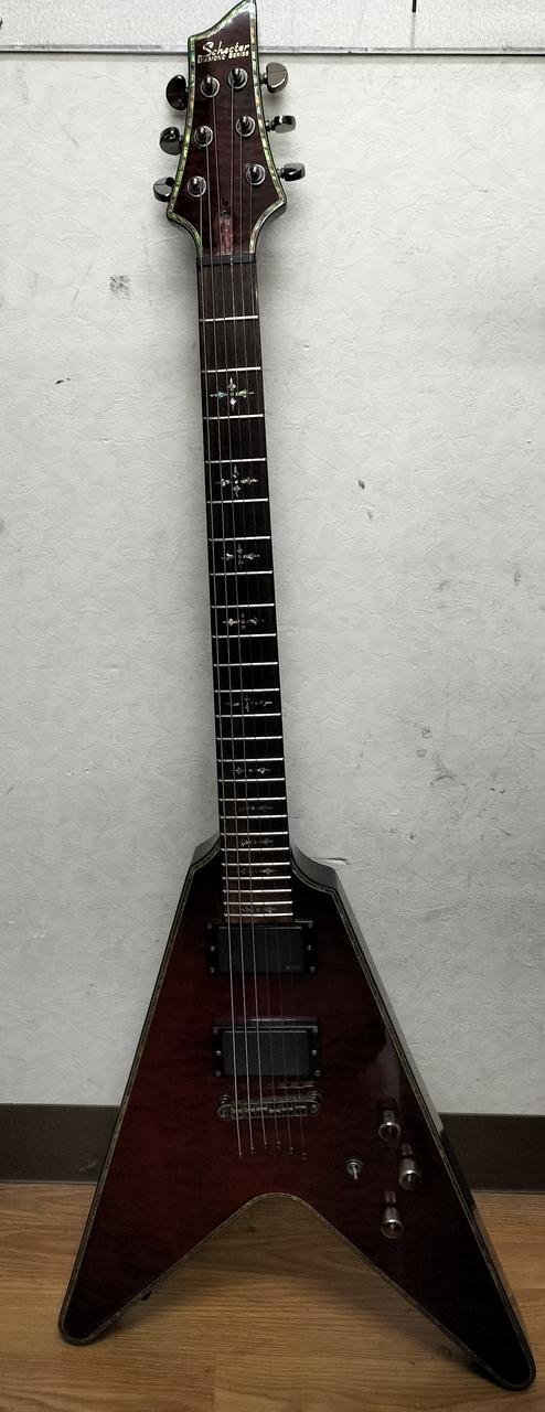 『ダイヤモンドシリーズ』の中でも、流通数の少ないVモデル左右非対称シェイプ、EMGピックアップといった、シェクターブランドらしい拘りを取り入れた一本 |