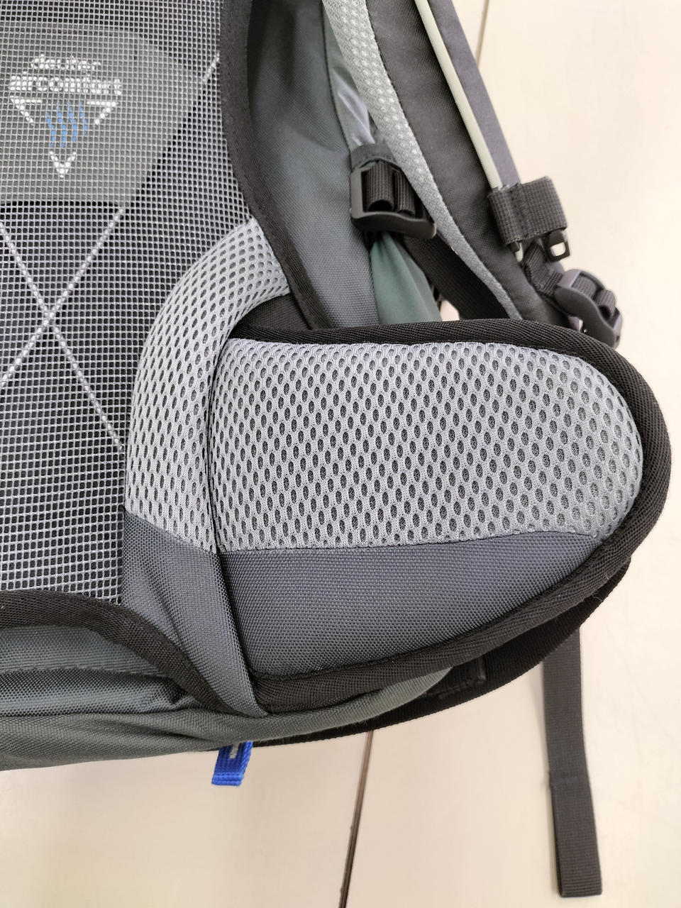 背中がメッシュ形状であり通気性が良く蒸れない作りになってます |