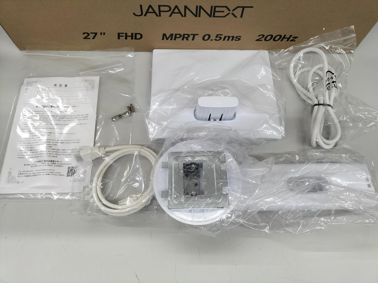 付属品:化粧箱:説明書:電源ケーブル:接続ケーブル:付属部品 |
