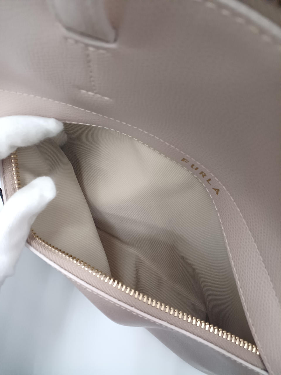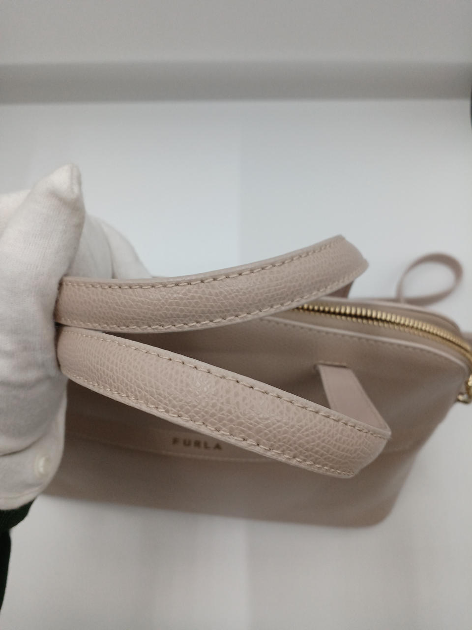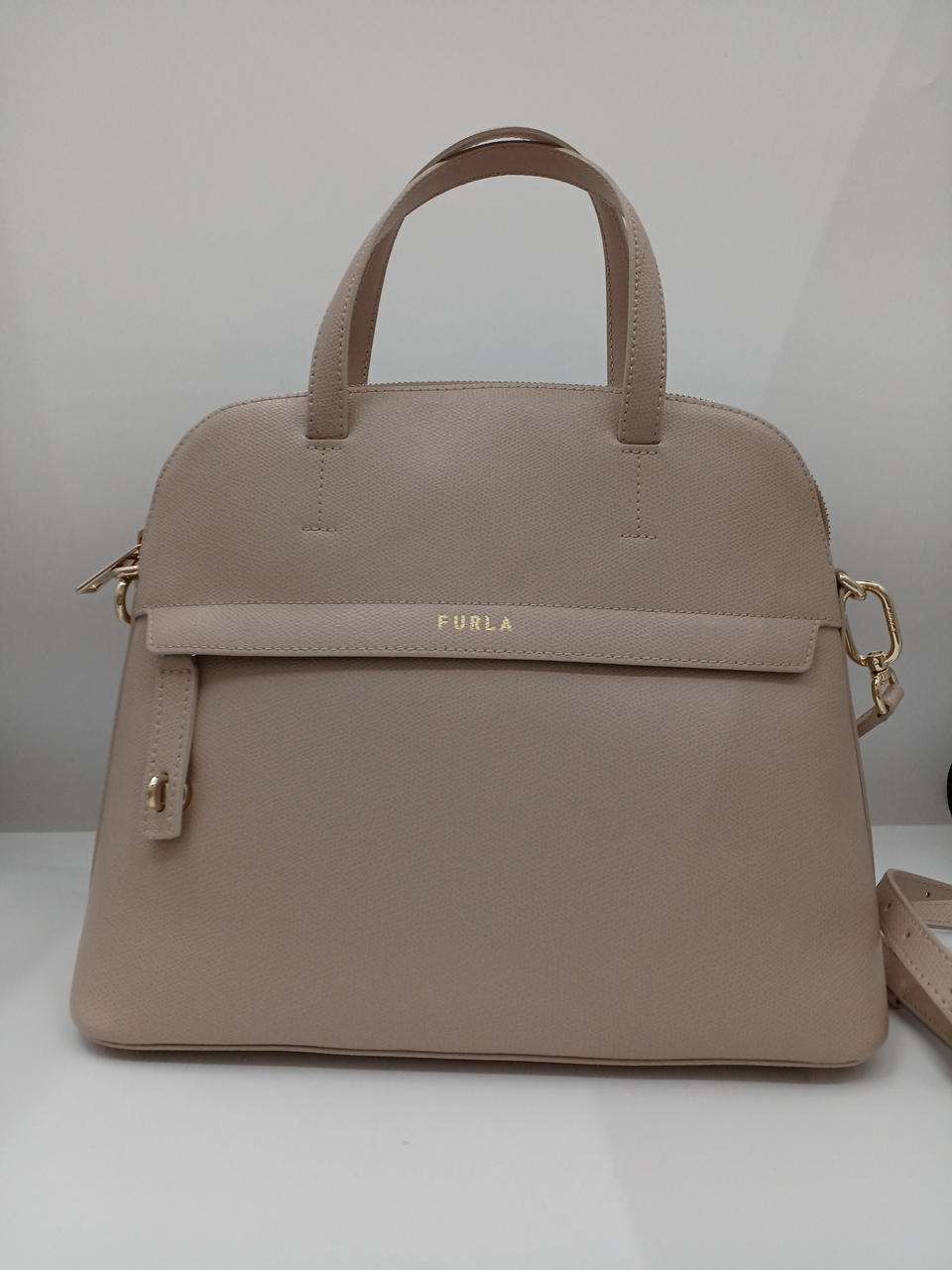 FURLAのバックです 持ち手キレイです 写真5枚目バック背面に汚れあり ショルダーベルト、保存袋あり ご不明な点は当店へお問い合わせください