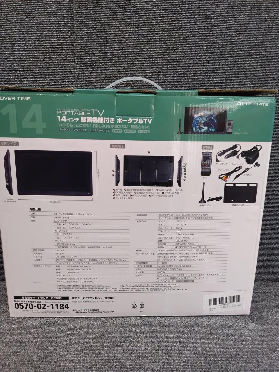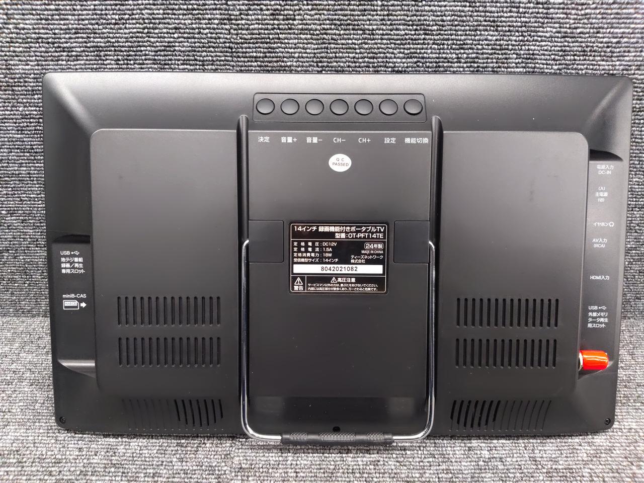 解像度1366×768ドットの14型液晶を搭載した4インチポータブルテレビ HDMI接続でパソコンのサブモニターとしても利用可能 |