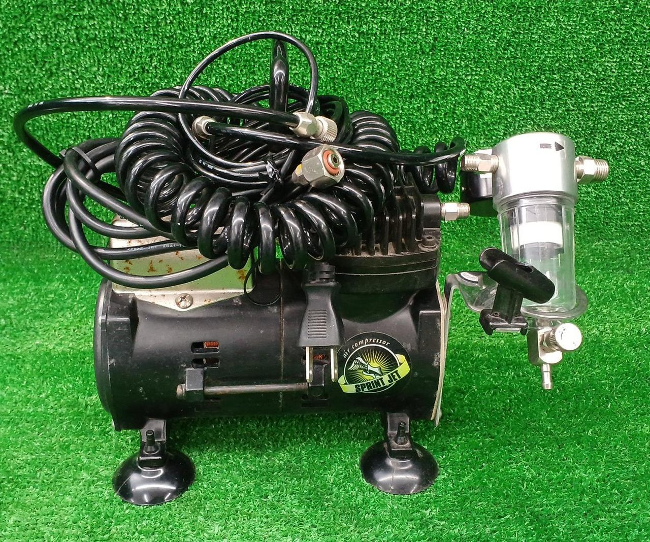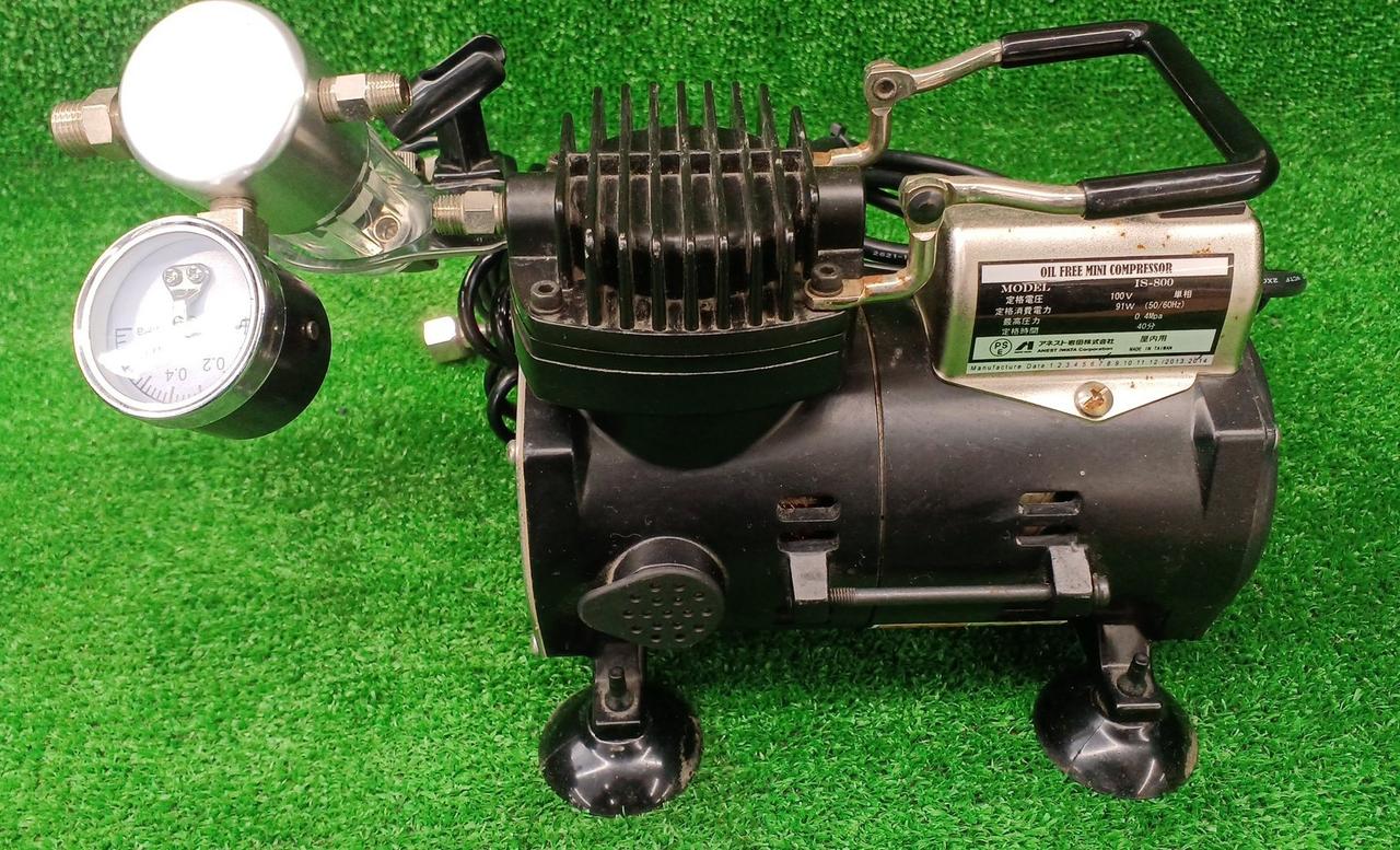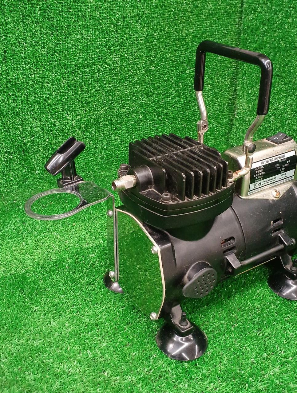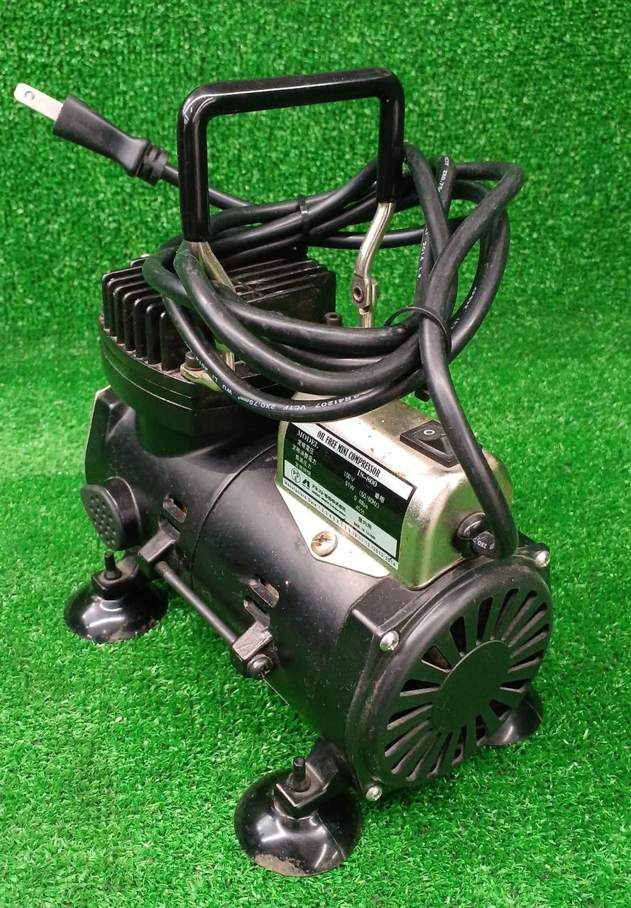 コンパクトなコンプレッサ。 静音設計で、ご家庭でのエアーブラシ塗装にも最適。 |