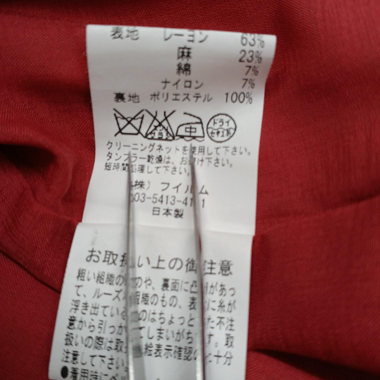 表地:レーヨン63% |