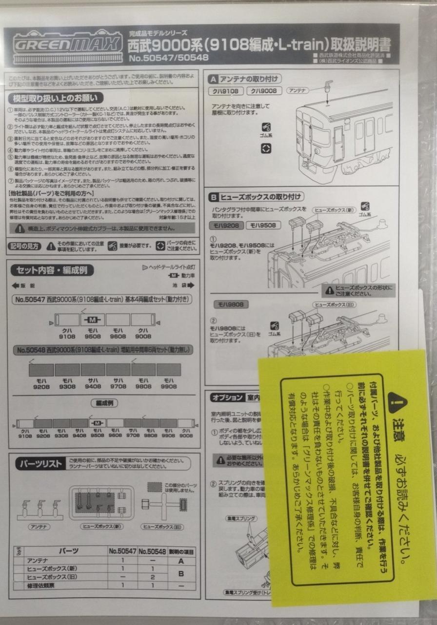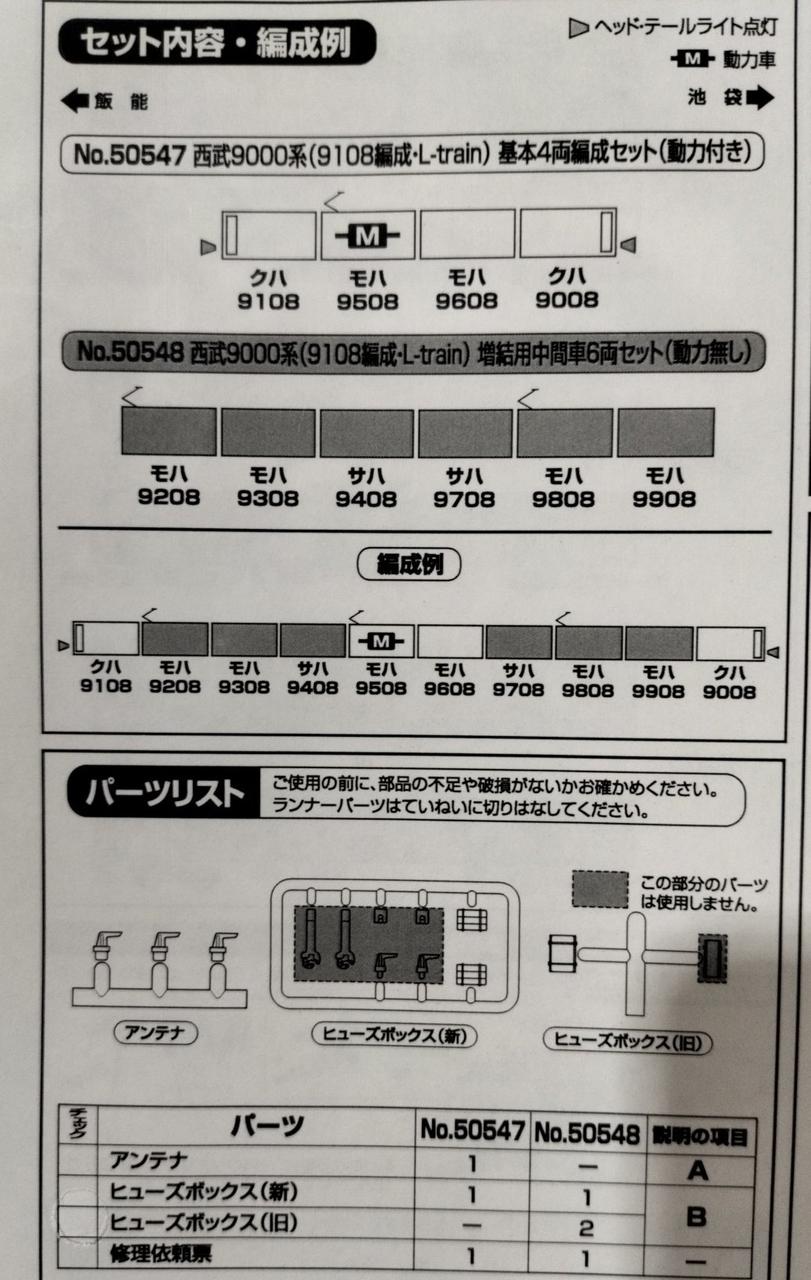 西武9000系(9108編成・L‐train)基本4両編成(動力付き)+増結用中間車6両セット(動力無し) |