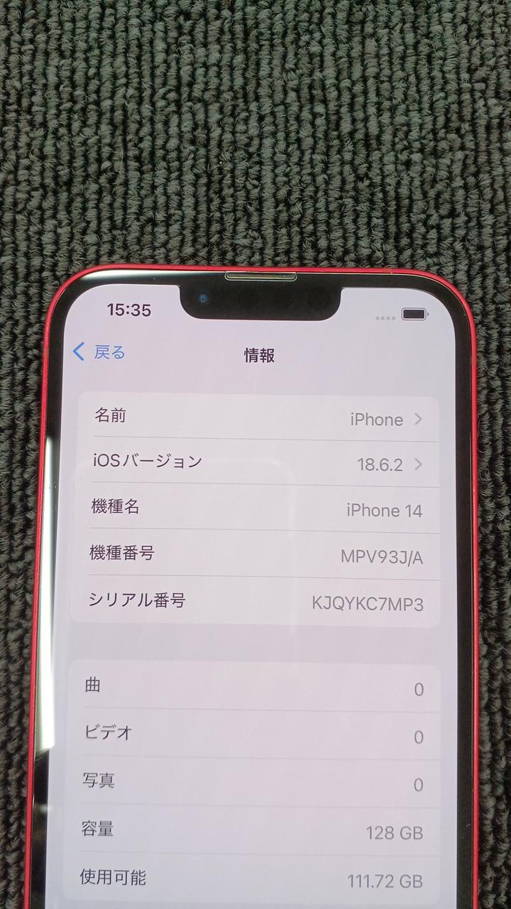 iOS:18.6.2 画面サイズ:6.1インチ 記憶容量:128GB SIMサイズ:nano バッテリー:89% |