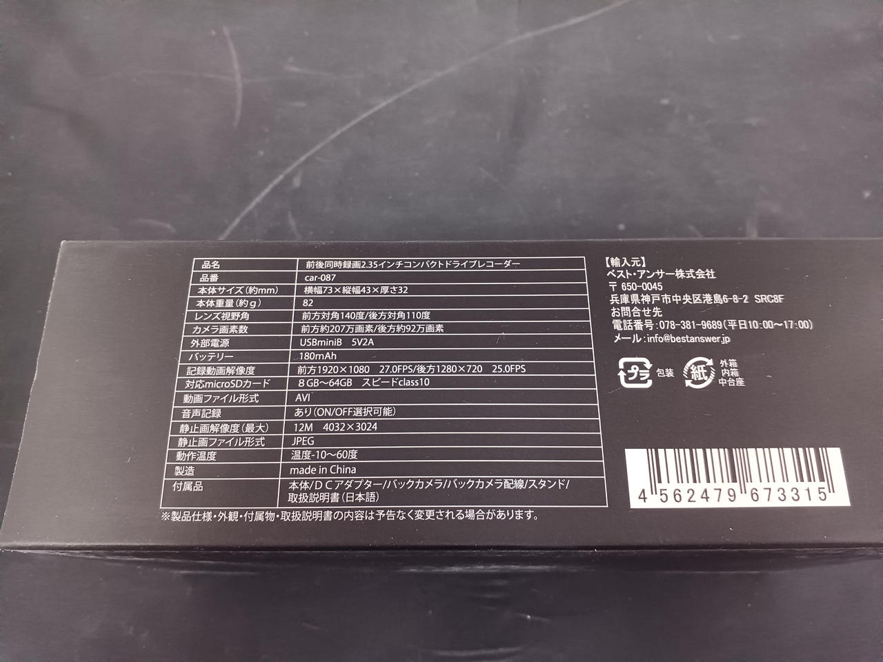 前後カメラ 2.35インチ HD 1080P microSDカード8GBから64GBまで対応※別売り |