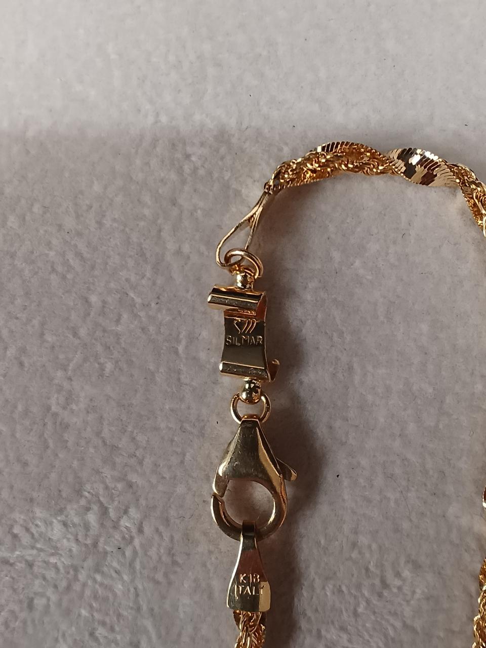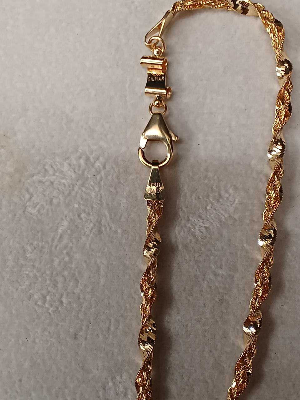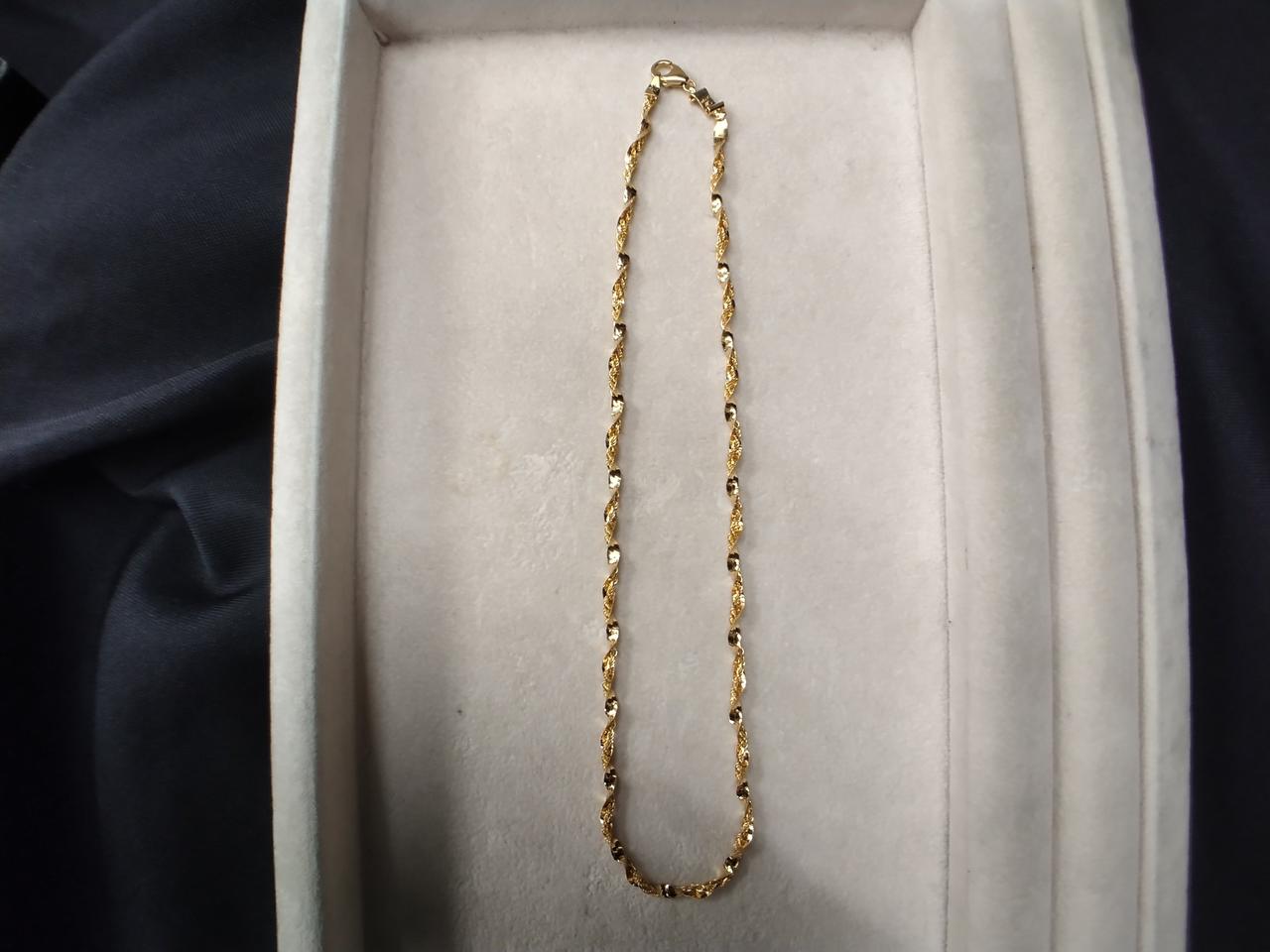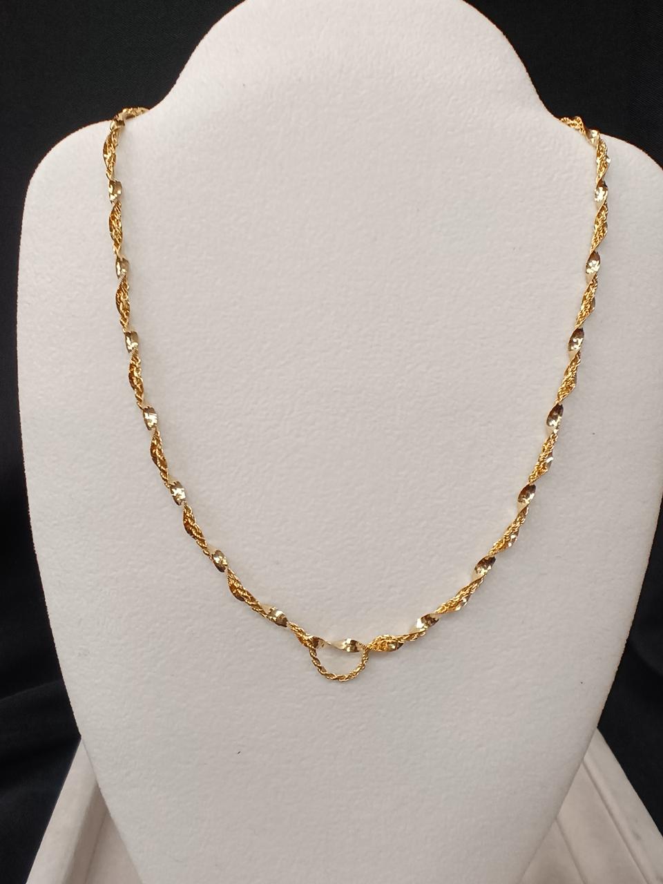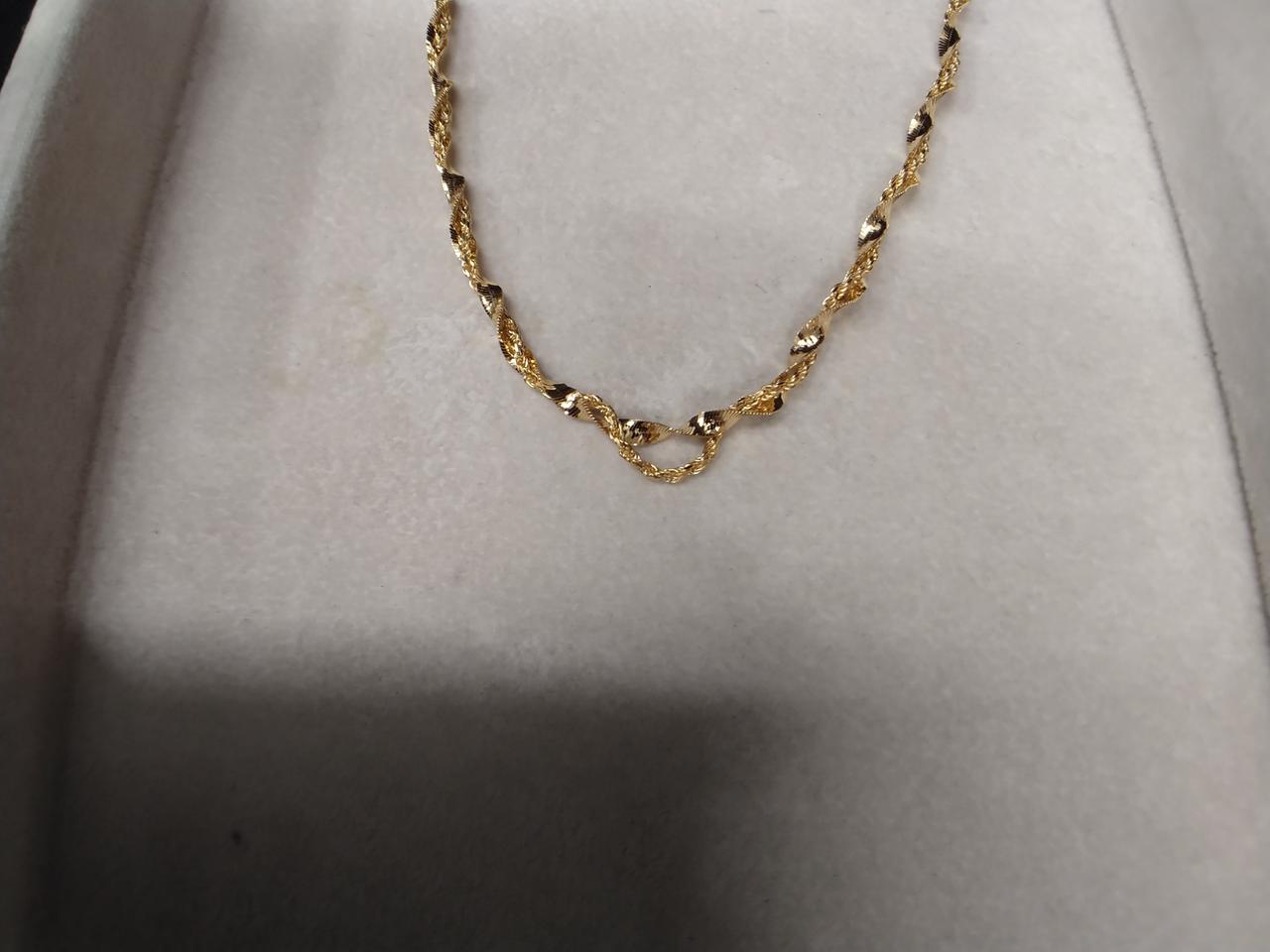 二本をねじったデザインですが、ロープチェーンの方が長いようで、付けると少したわみます。 |