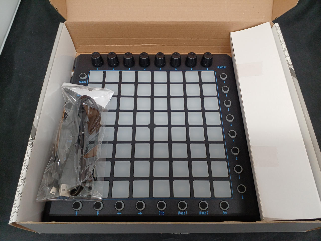 64個のマルチカラーバックライトボタン、8つのエンコーダーノブ、8つのコントロールボタン 化粧箱、USBケーブル付属(取扱説明書欠品) |