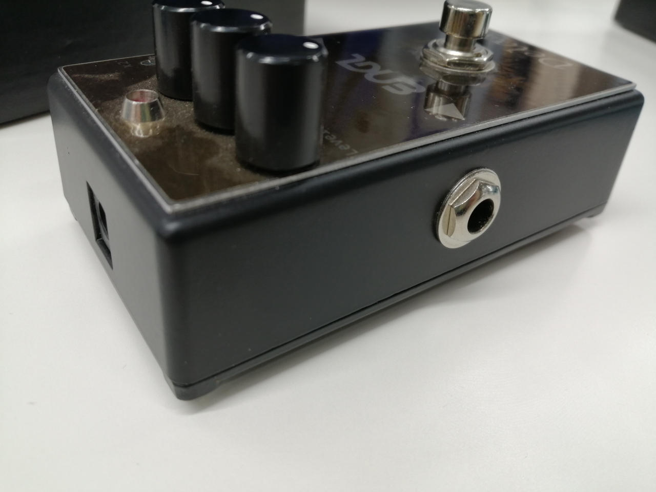 ひっくり返すとモジュラーケーブル差し込み口…のような“SCS端子”なるものが付いている、ディレイエフェクター。