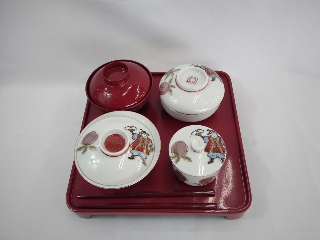 蓋付き4個セット、盆 |