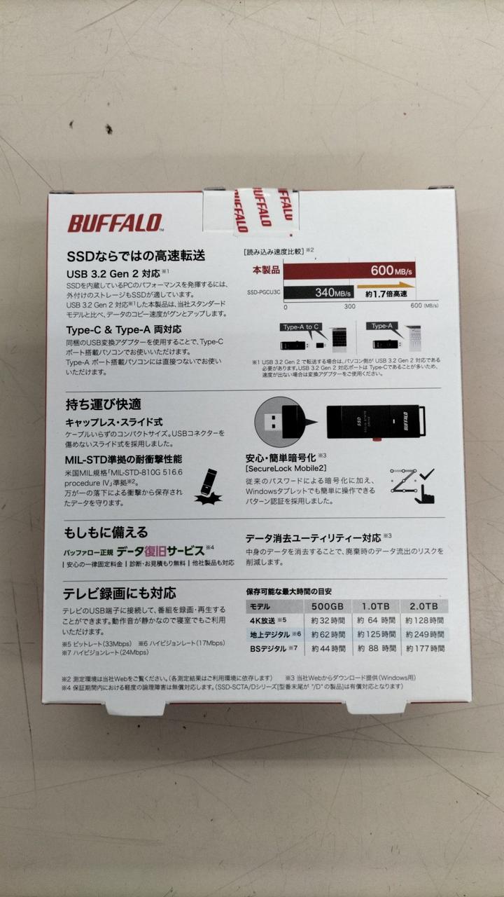 容量:2000GB インターフェイス:USB 読込速度:600MB/S |