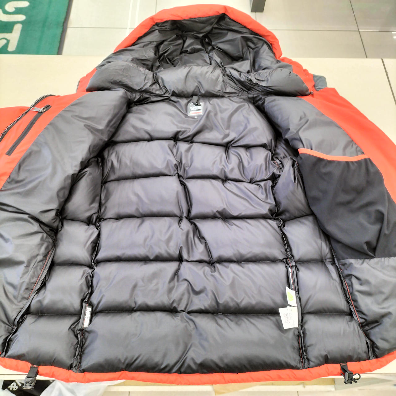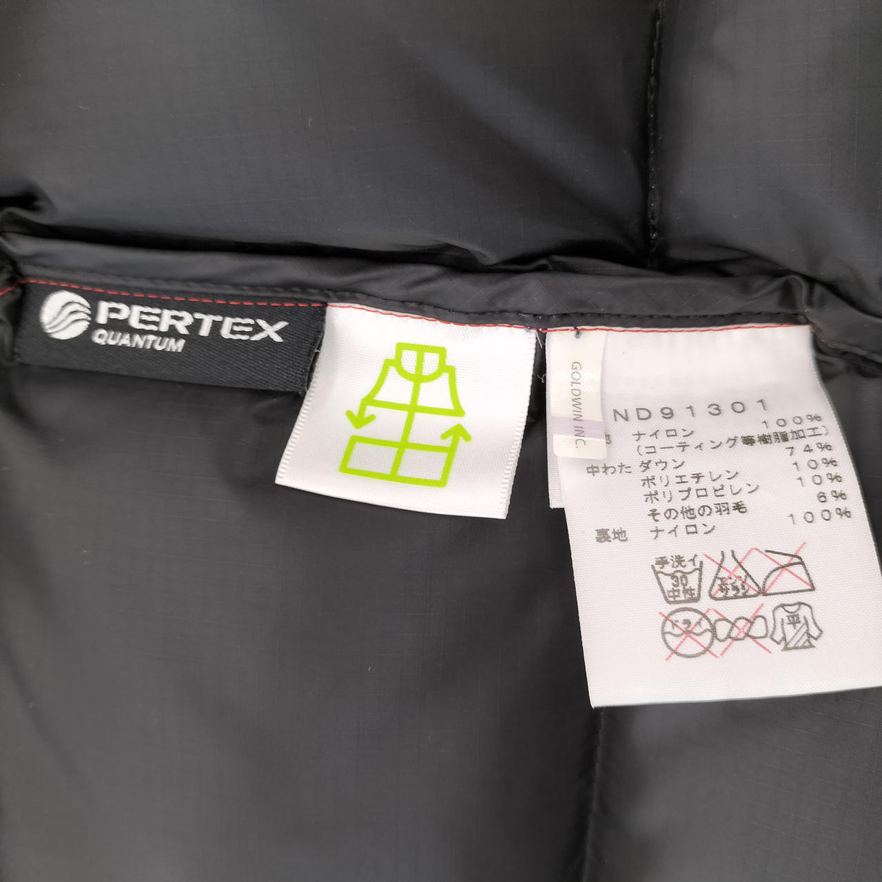 ダウン72%〜74%、ポリエチレン10%、ポリプロピレン10%、その他羽毛6%〜8%
