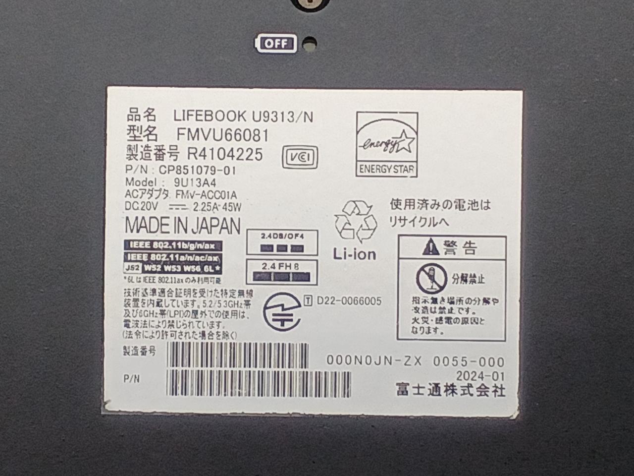 OS:WINDOWS 11 PRO 64BIT CPU:CORE I5-1345U 2.5GHZ |