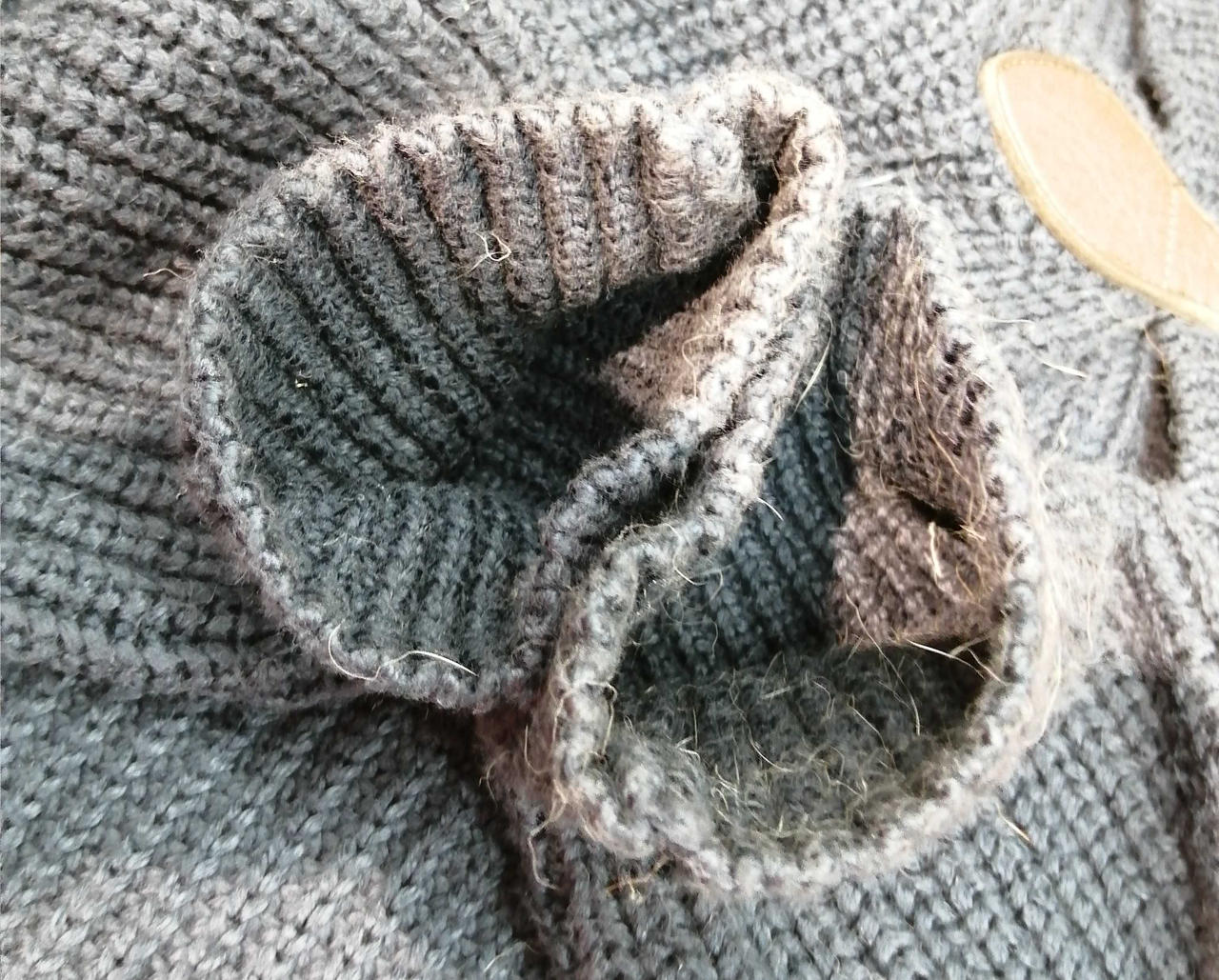 袖口汚れや毛玉が目立ちます。 |