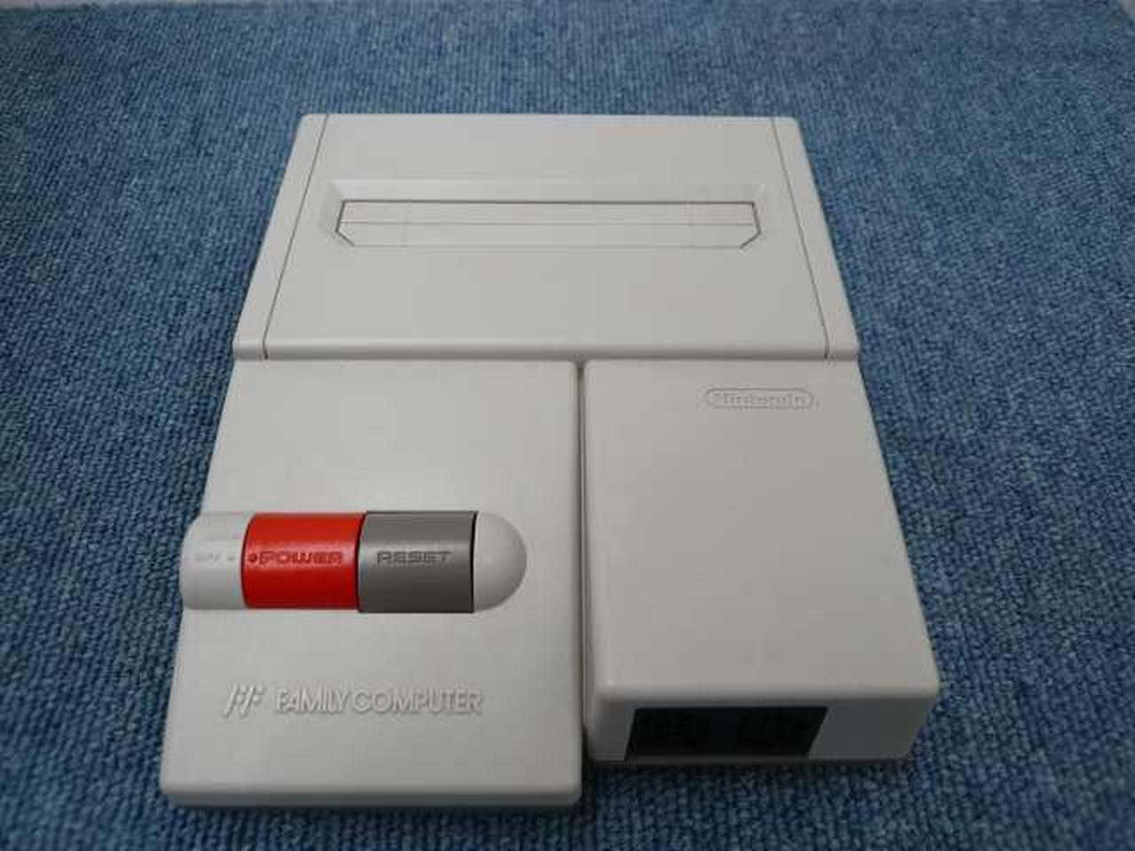 初代ファミコンに比べ一回り小さく、ビデオ出力に対応したファミコンです |