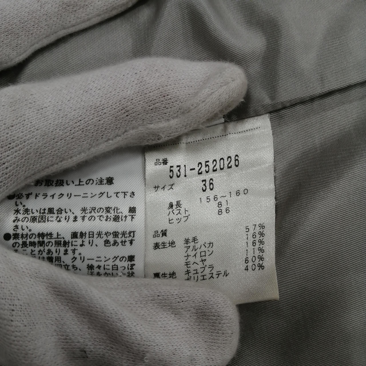 袖口に汚れあり。